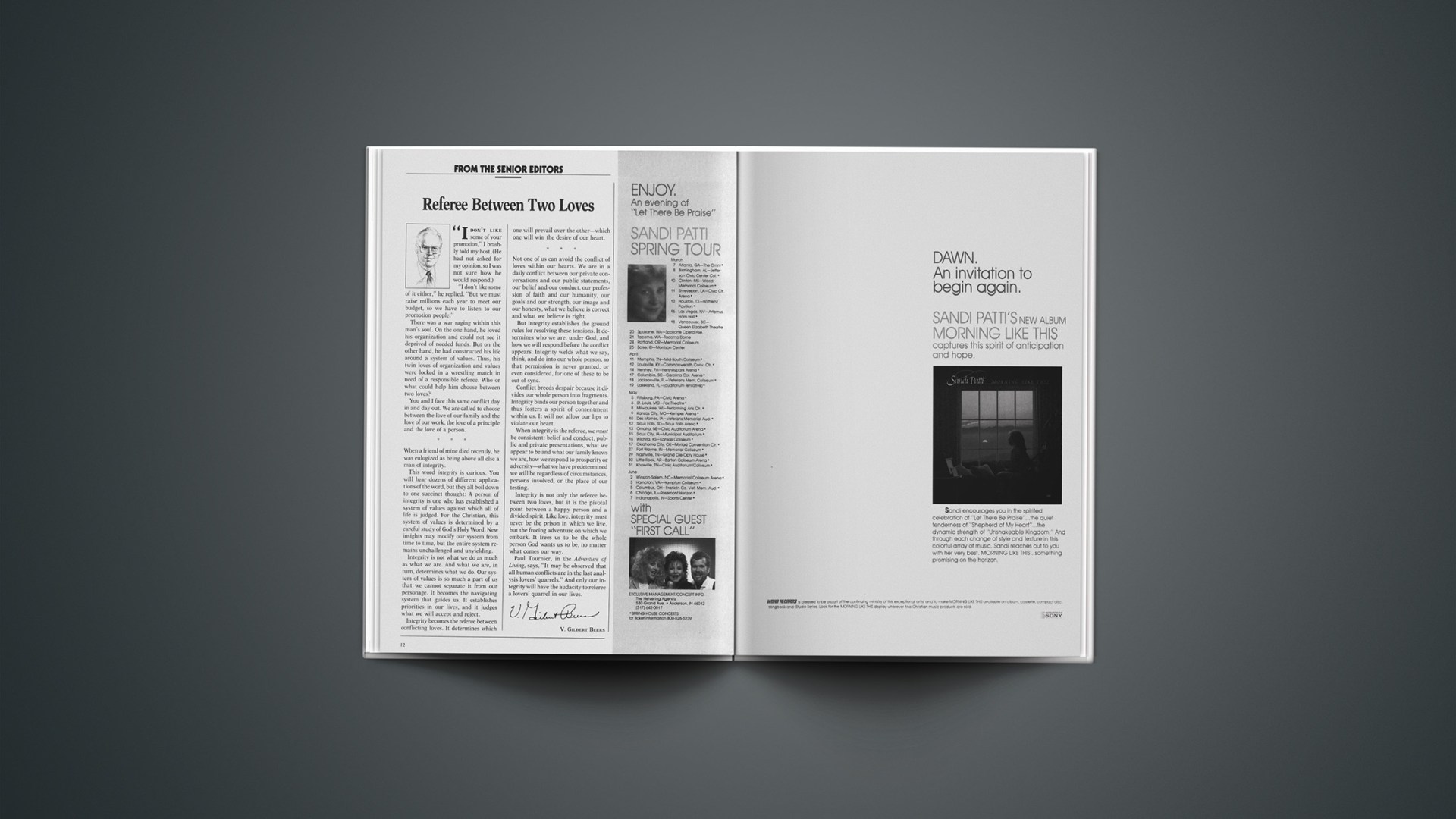 Integrity becomes the referee between conflicting loves. It determines which one will prevail over the other—which one will win the desire of our heart.