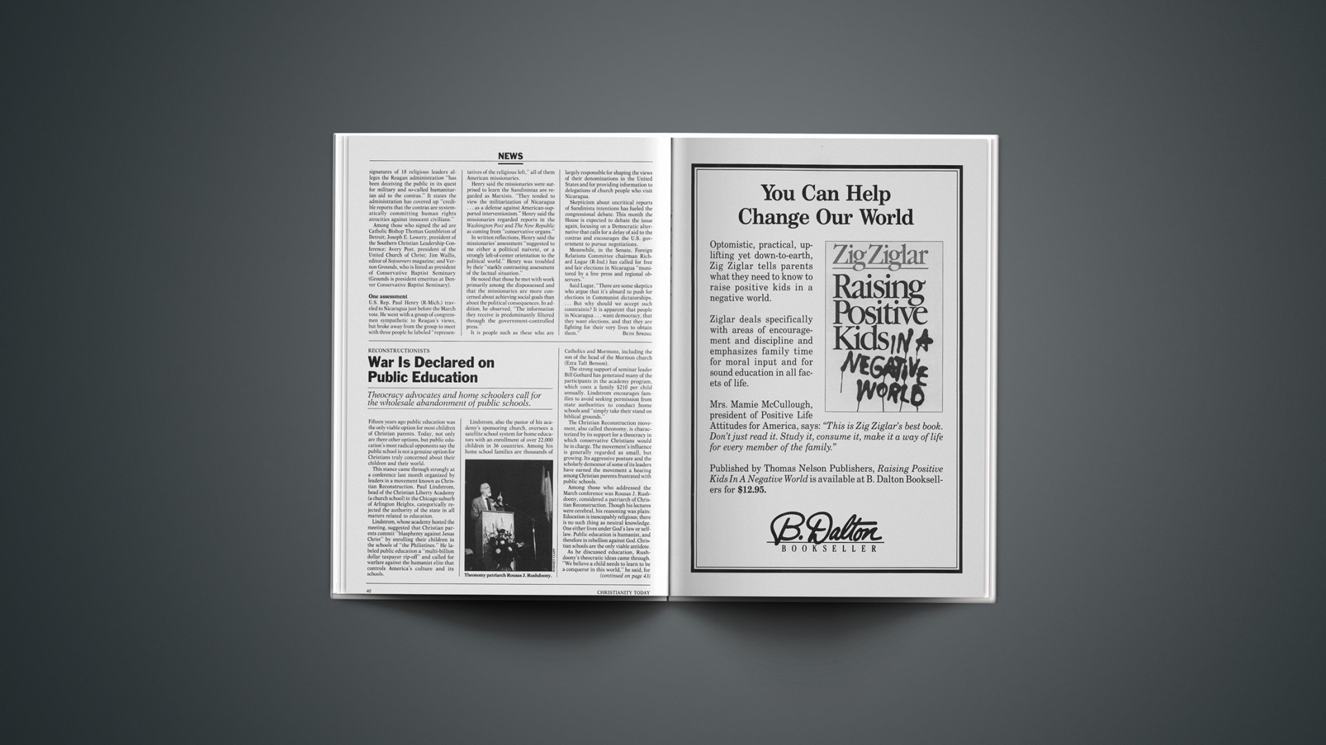 This stance came through strongly at a conference last month organized by leaders in a movement known as Christian Reconstruction. Paul Lindstrom, head of the Christian Liberty Academy (a church school) in the Chicago suburb of Arlington Heights, categorically rejected the authority of the state in all matters related to education.