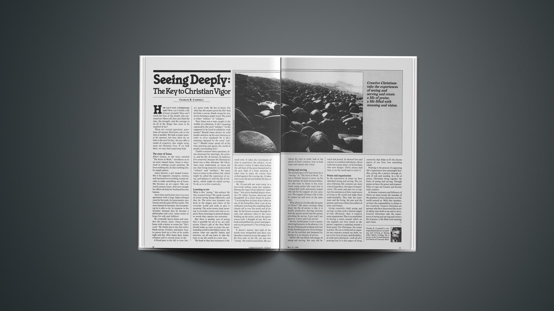 As human creatures and followers of Christ we must accept the mandate of the psalmist to have dominion over the world around us. With that mandate, we have the responsibility to choose to live creatively. Creative Christians are persons who have discovered the secret of taking time both to see and to serve. Creative Christians take the experiences of seeing and serving and create a life of praise, a life filled with meaning and vision.