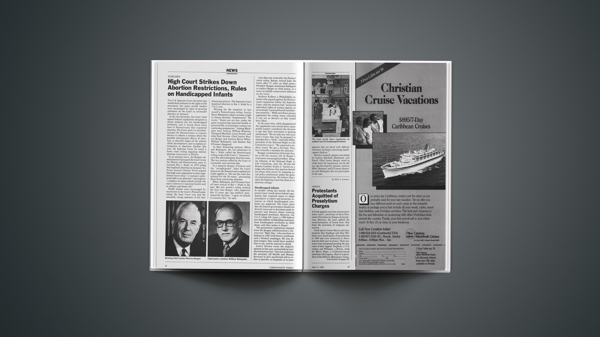 In the two decisions, the Court ruled against federal regulations designed to assure medical care for handicapped newborns, and it struck down state laws in Pennsylvania that regulated abortion. The Court said it is unconstitutional for Pennsylvania to require doctors to inform a woman about the possible detrimental effects of abortion; to describe stages of the unborn child’s development; and to explain alternatives to abortion. Earlier this year, the Supreme Court let stand a lower court ruling negating similar abortion restrictions in Illinois.
