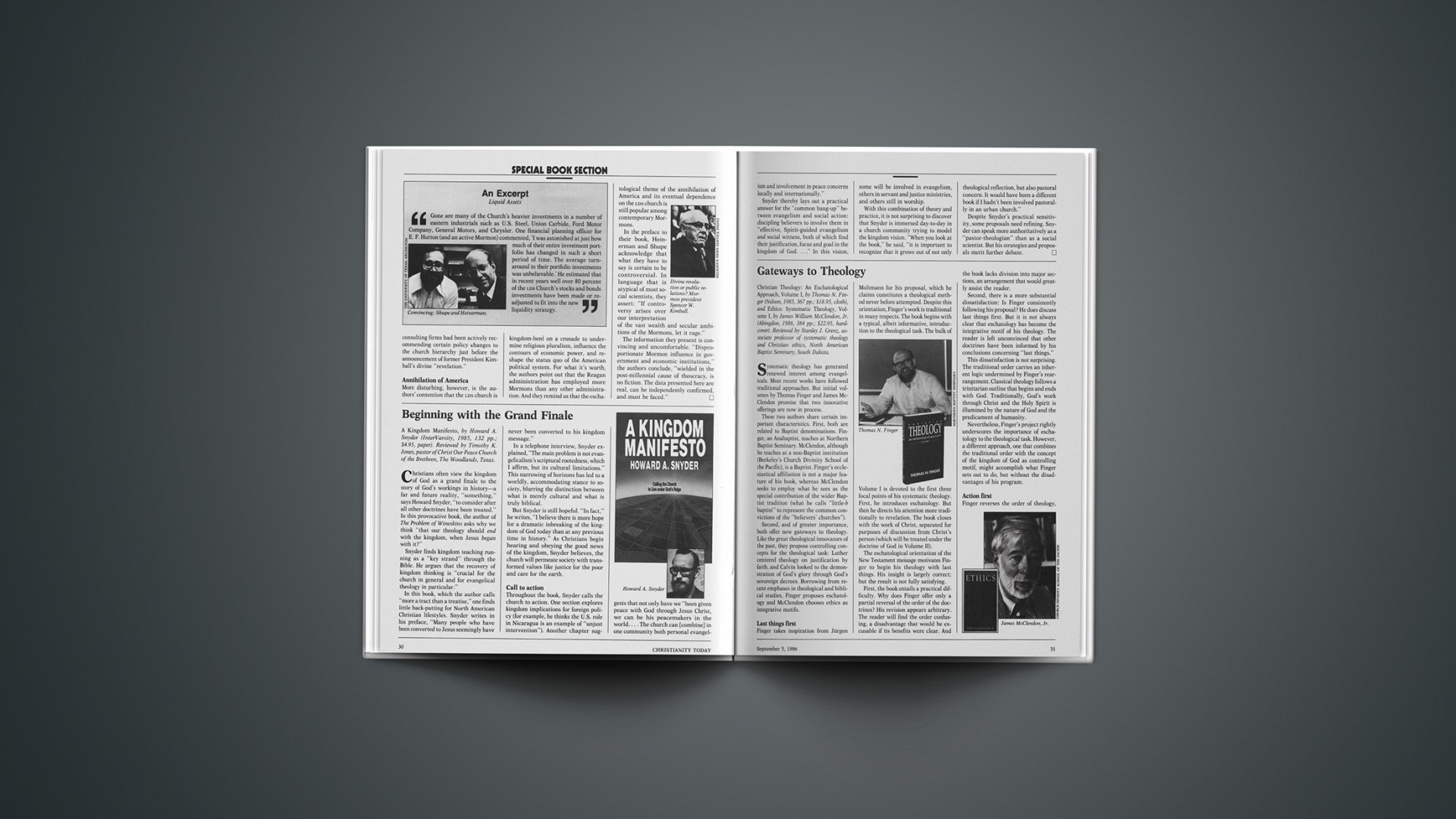 Christian Theology: An Eschatological Approach, Volume I, by Thomas N. Finger (Nelson, 1985, 367 pp.; $18.95, cloth), and Ethics: Systematic Theology, Volume I, by James William McClendon, Jr. (Abingdon, 1986, 384 pp.; $22.95, hardcover). Reviewed by Stanley J. Grenz, associate professor of systematic theology and Christian ethics, North American Baptist Seminary, South Dakota.