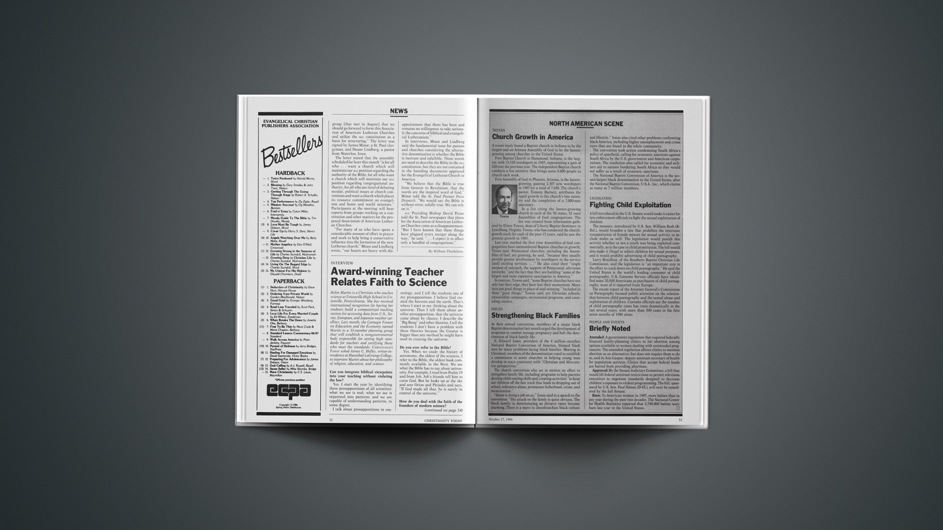 In a list citing the fastest-growing church in each of the 50 states, 32 were Assemblies of God congregations. The list was created from information gathered by Elmer Towns, dean of Liberty Baptist Seminary in Lynchburg, Virginia. Towns, who has conducted the church-growth study for each of the past 15 years, said he saw the greatest growth in 1985.
