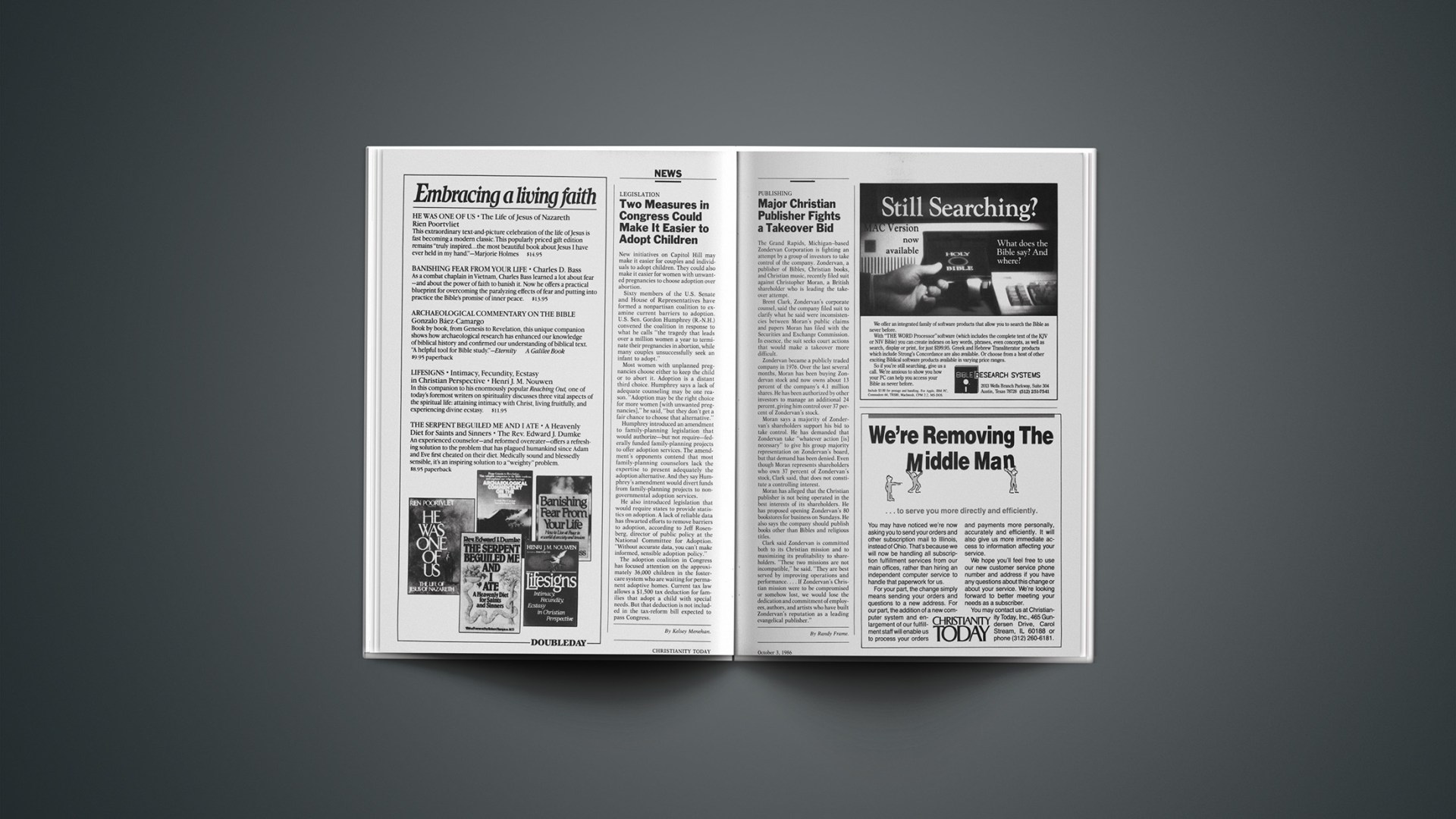 Zondervan became a publicly traded company in 1976. Over the last several months, Moran has been buying Zondervan stock and now owns about 13 percent of the company’s 4.1 million shares. He has been authorized by other investors to manage an additional 24 percent, giving him control over 37 percent of Zondervan’s stock.