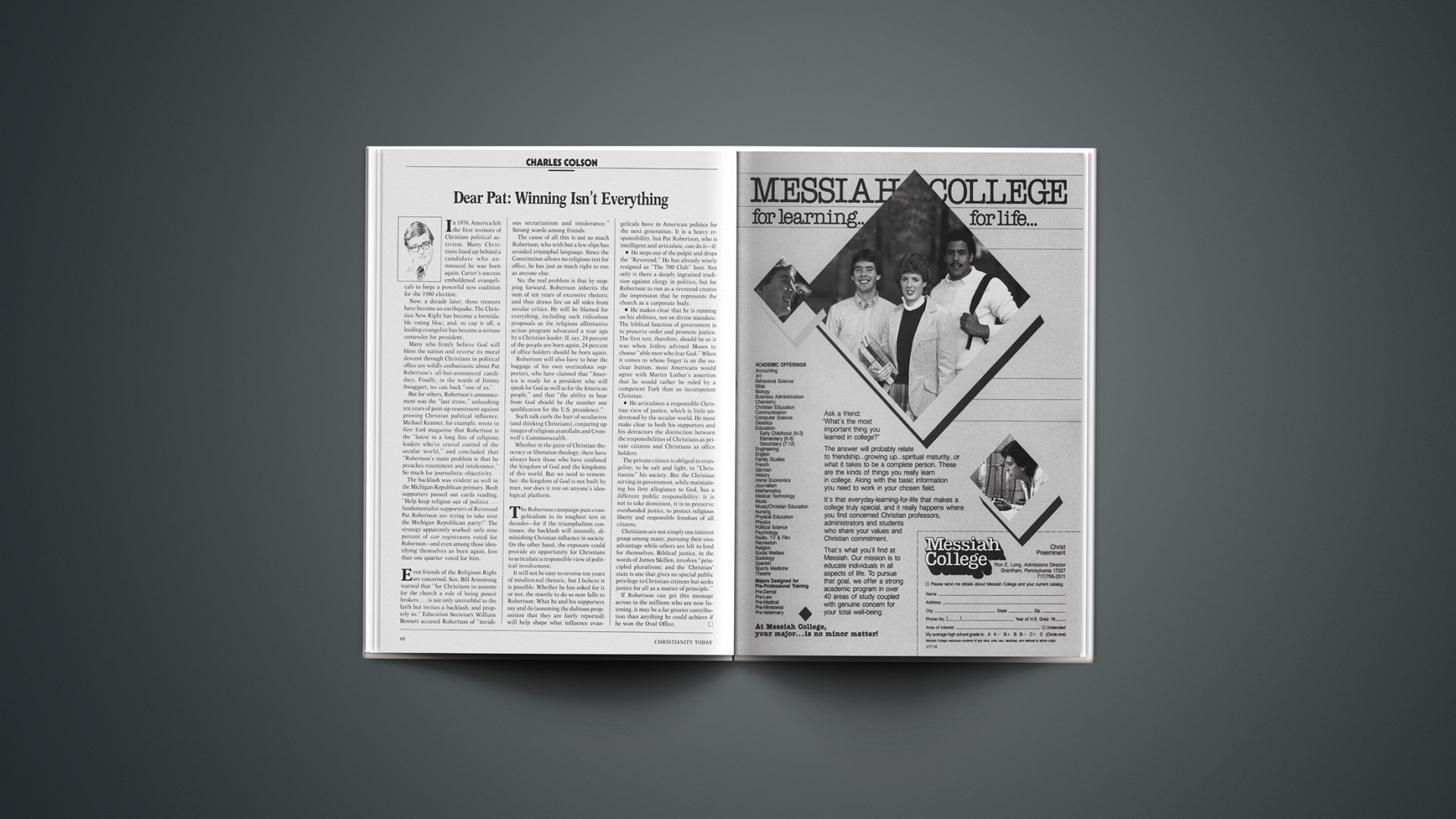 The Robertson campaign puts evangelicalism to its toughest test in decades—for if the triumphalism continues, the backlash will intensify, diminishing Christian influence in society. On the other hand, the exposure could provide an opportunity for Christians to articulate a responsible view of political involvement.