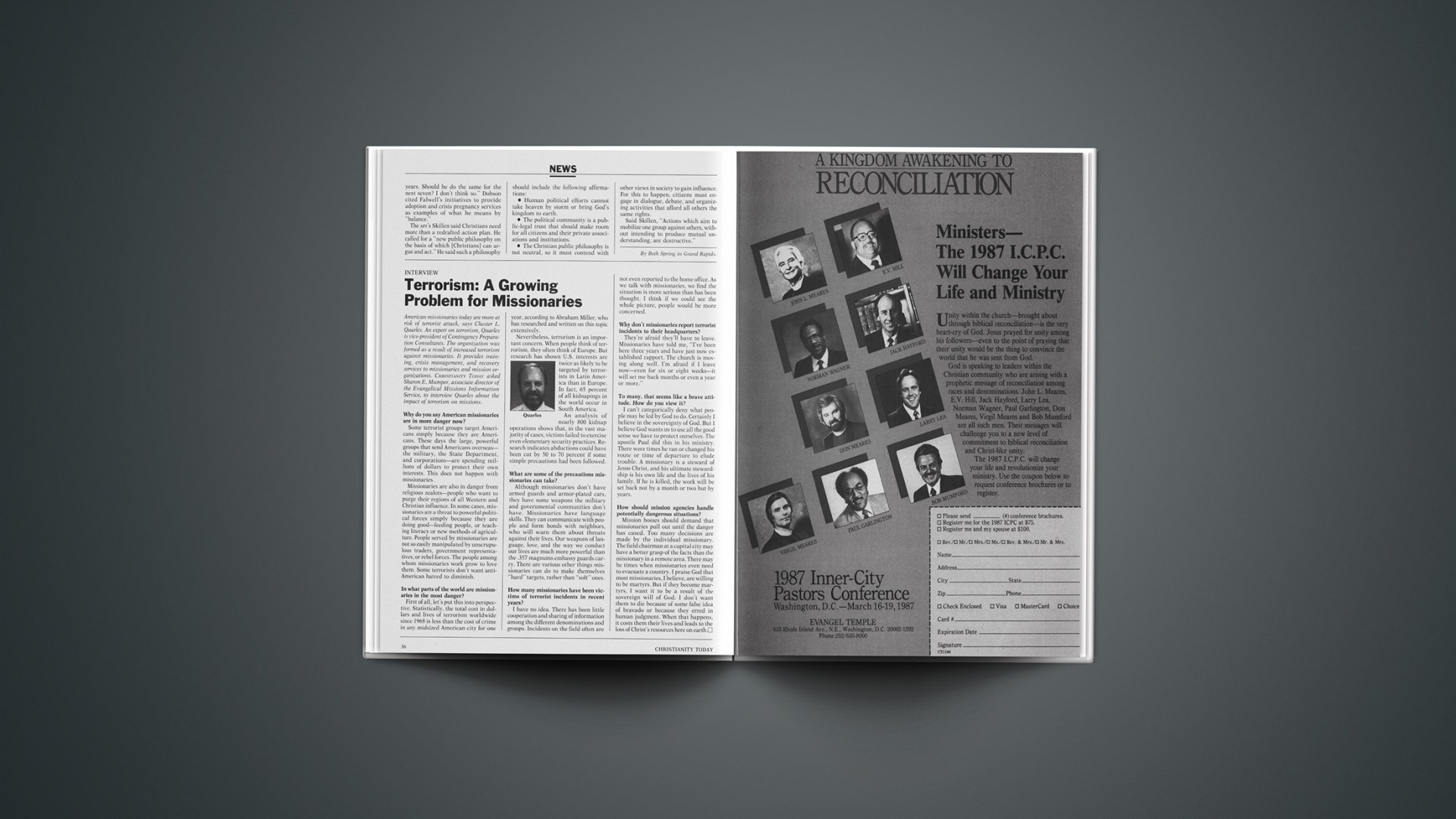 American missionaries today are more at risk of terrorist attack, says Chester L. Quarles. An expert on terrorism, Quarles is vice-president of Contingency Preparation Consultants. The organization was formed as a result of increased terrorism against missionaries. It provides training, crisis management, and recovery services to missionaries and mission organizations. CHRISTIANITY TODAY asked Sharon E. Mumper, associate director of the Evangelical Missions Information Service, to interview Quarles about the impact of terrorism on missions.
