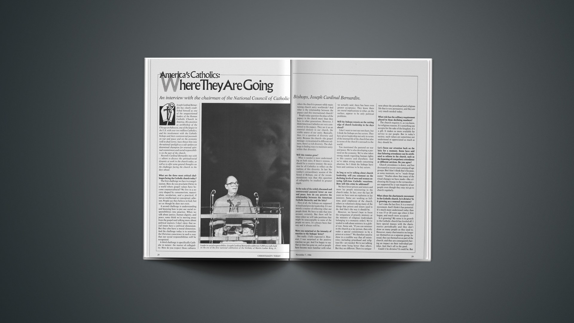 Recently Cardinal Bernardin met with CT editors to discuss the spiritual/social dynamic at work in the church today, as well as to offer some general thoughts on the challenges facing the church in the days ahead.