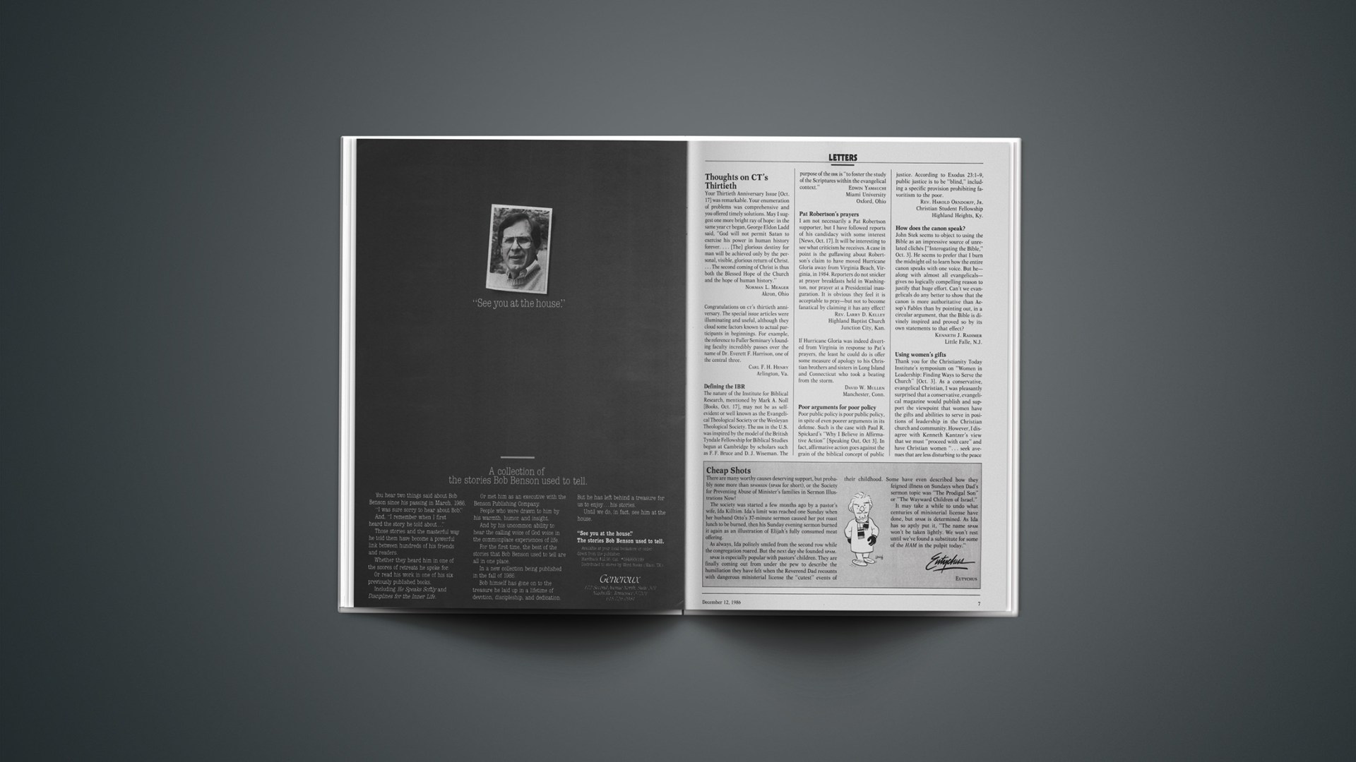 Congratulations on CT’s thirtieth anniversary. The special issue articles were illuminating and useful, although they cloud some factors known to actual participants in beginnings. For example, the reference to Fuller Seminary’s founding faculty incredibly passes over the name of Dr. Everett F. Harrison, one of the central three.