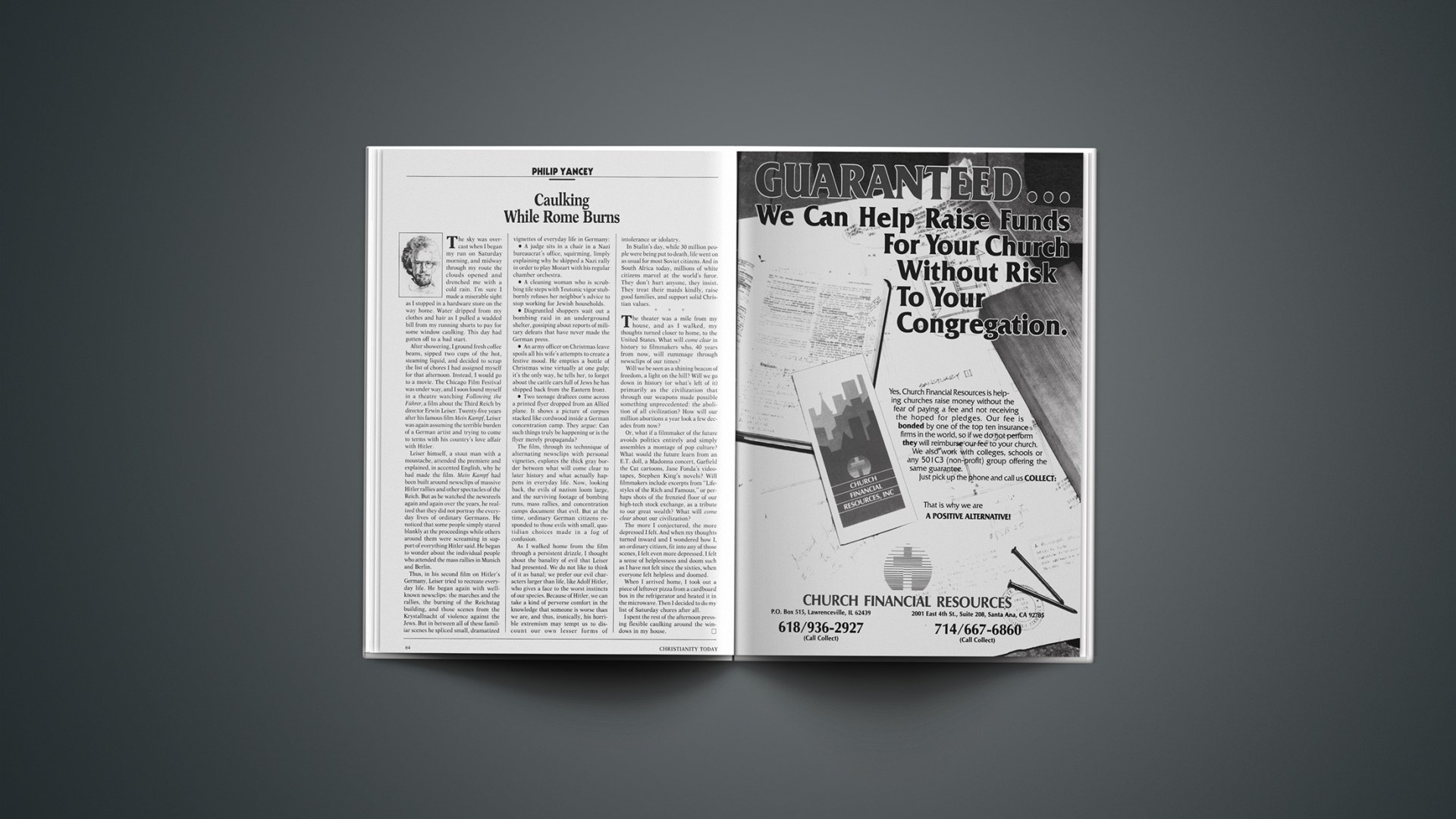 After showering, I ground fresh coffee beans, sipped two cups of the hot, steaming liquid, and decided to scrap the list of chores I had assigned myself for that afternoon. Instead, I would go to a movie. The Chicago Film Festival was under way, and I soon found myself in a theatre watching Following the Führer, a film about the Third Reich by director Erwin Leiser. Twenty-five years after his famous film Mein Kampf, Leiser was again assuming the terrible burden of a German artist and trying to come to terms with his country’s love affair with Hitler.