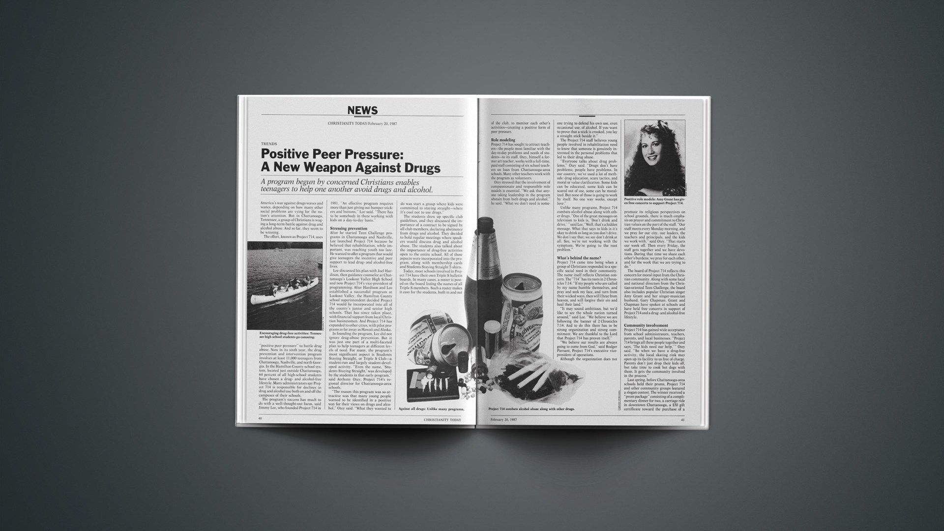 The board of Project 714 reflects this concern for moral input from the Christian community. Along with some local and national directors from the Christian-oriented Teen Challenge, the board also includes popular Christian singer Amy Grant and her singer-musician husband, Gary Chapman. Grant and Chapman have spoken at schools and have held free concerts in support of Project 714 and a drug-and alcohol-free lifestyle.