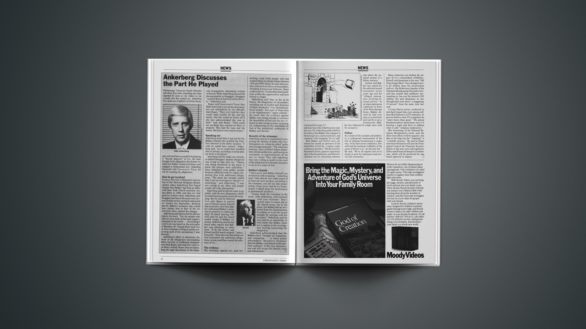 Chattanooga, Tennessee-based Christian talk show host John Ankerberg has been regarded by some as the villain in the scandal that has rocked PTL. Ankerberg first spoke out in defense of Jimmy Swaggart, who had been accused of instigating a “hostile takeover” of PTL. He later brought forth allegations that former PTL head Jim Bakker visited prostitutes and engaged in homosexual acts. Ankerberg discussed with CHRISTIANITY TODAY his role in revealing the allegations.