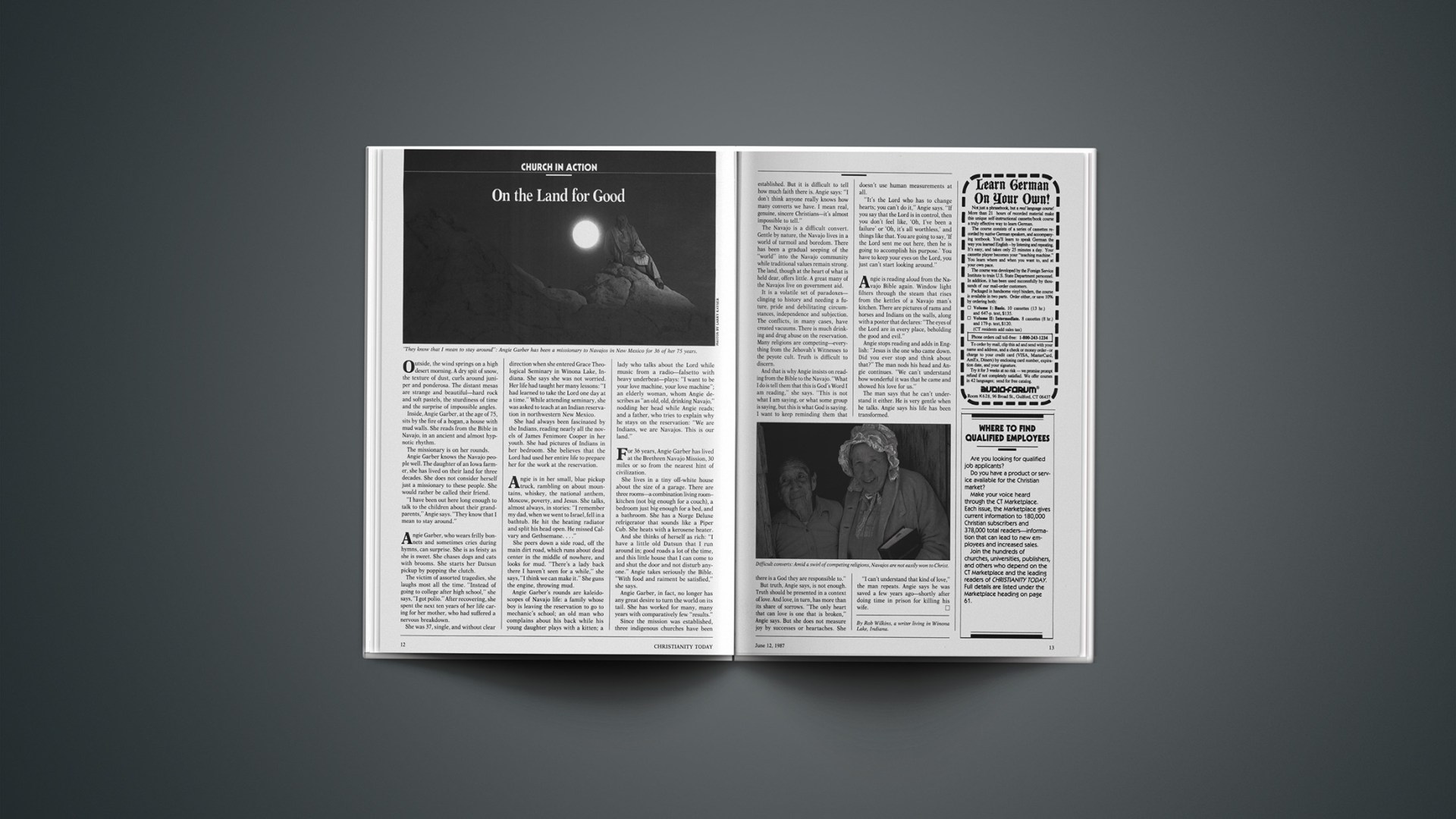 She was 37, single, and without clear direction when she entered Grace Theological Seminary in Winona Lake, Indiana. She says she was not worried. Her life had taught her many lessons: “I had learned to take the Lord one day at a time.” While attending seminary, she was asked to teach at an Indian reservation in northwestern New Mexico.