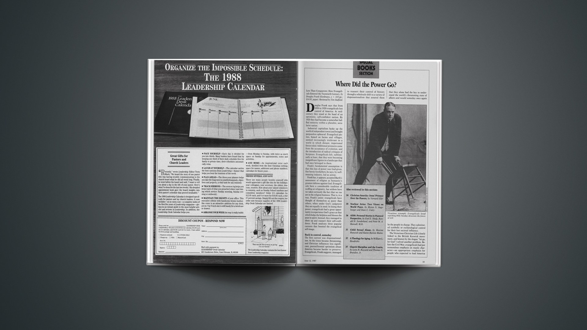 Frank has, it appears, accepted Barth’s assessment of religion as humanity’s greatest defense against God. Evangelicals have a considerable tradition of scoffing at religiosity, but seldom have we taken seriously the fact that we too are in the religion business. That is, in a way, Frank’s point: evangelicals have thought of themselves as purer than others, when under God’s judgment they are equally in need. In losing their power, evangelicals had a great opportunity to experience God’s grace as that which helps the helpless and blesses the poor in spirit. Instead, they managed to shore up and reassert their self-confidence. Frank analyzes three popular currents that boosted the evangelical self-image.