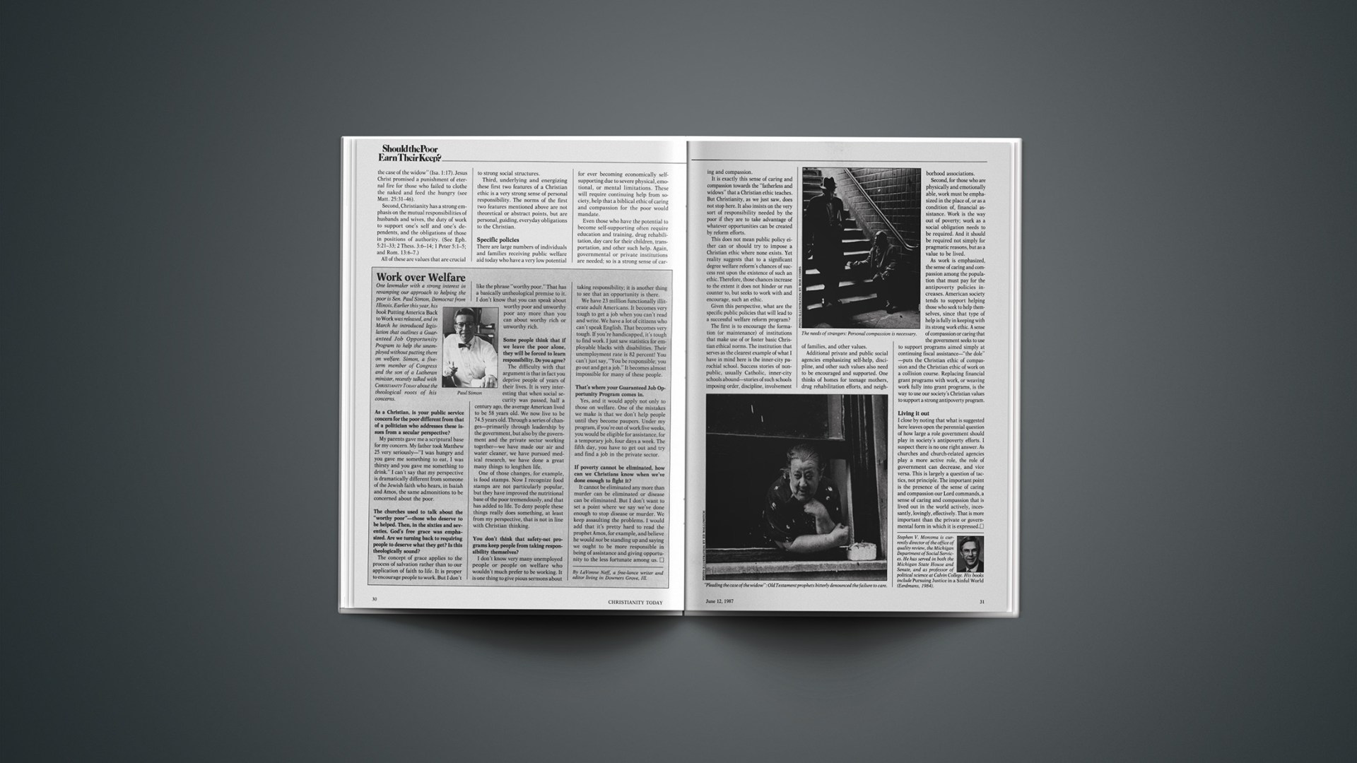 One lawmaker with a strong interest in revamping our approach to helping the poor is Sen. Paul Simon, Democrat from Illinois. Earlier this year, his book Putting America Back to Work was released, and in March he introduced legislation that outlines a Guaranteed Job Opportunity Program to help the unemployed without putting them on welfare. Simon, a five-term member of Congress and the son of a Lutheran minister, recently talked with CHRISTIANITY TODAY about the theological roots of his concerns.