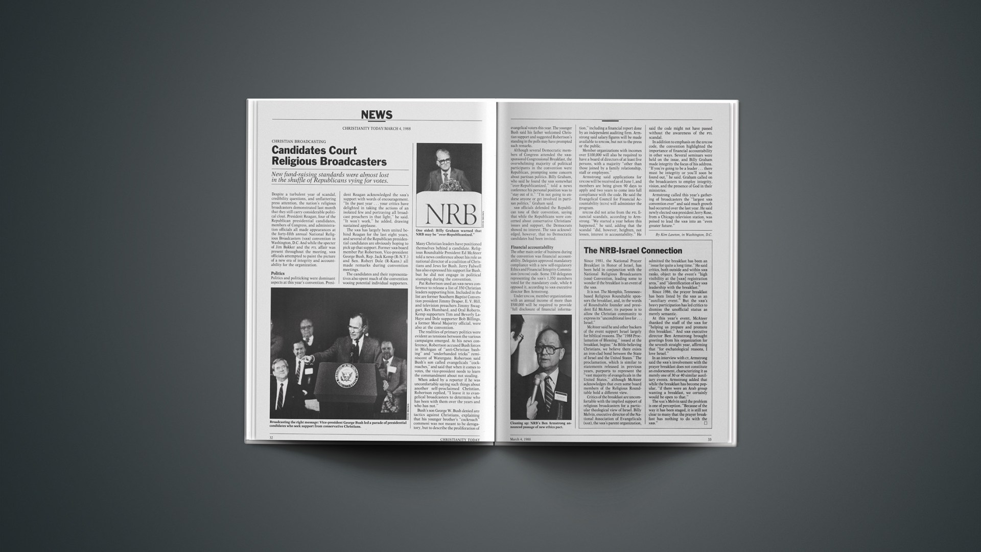 Despite a turbulent year of scandal, credibility questions, and unflattering press attention, the nation’s religious broadcasters demonstrated last month that they still carry considerable political clout. President Reagan, four of the Republican presidential candidates, members of Congress, and administration officials all made appearances at the forty-fifth annual National Religious Broadcasters (NRB) convention in Washington, D.C. And while the specter of Jim Bakker and the PTL affair was present throughout the meeting, NRB officials attempted to paint the picture of a new era of integrity and accountability for the organization.