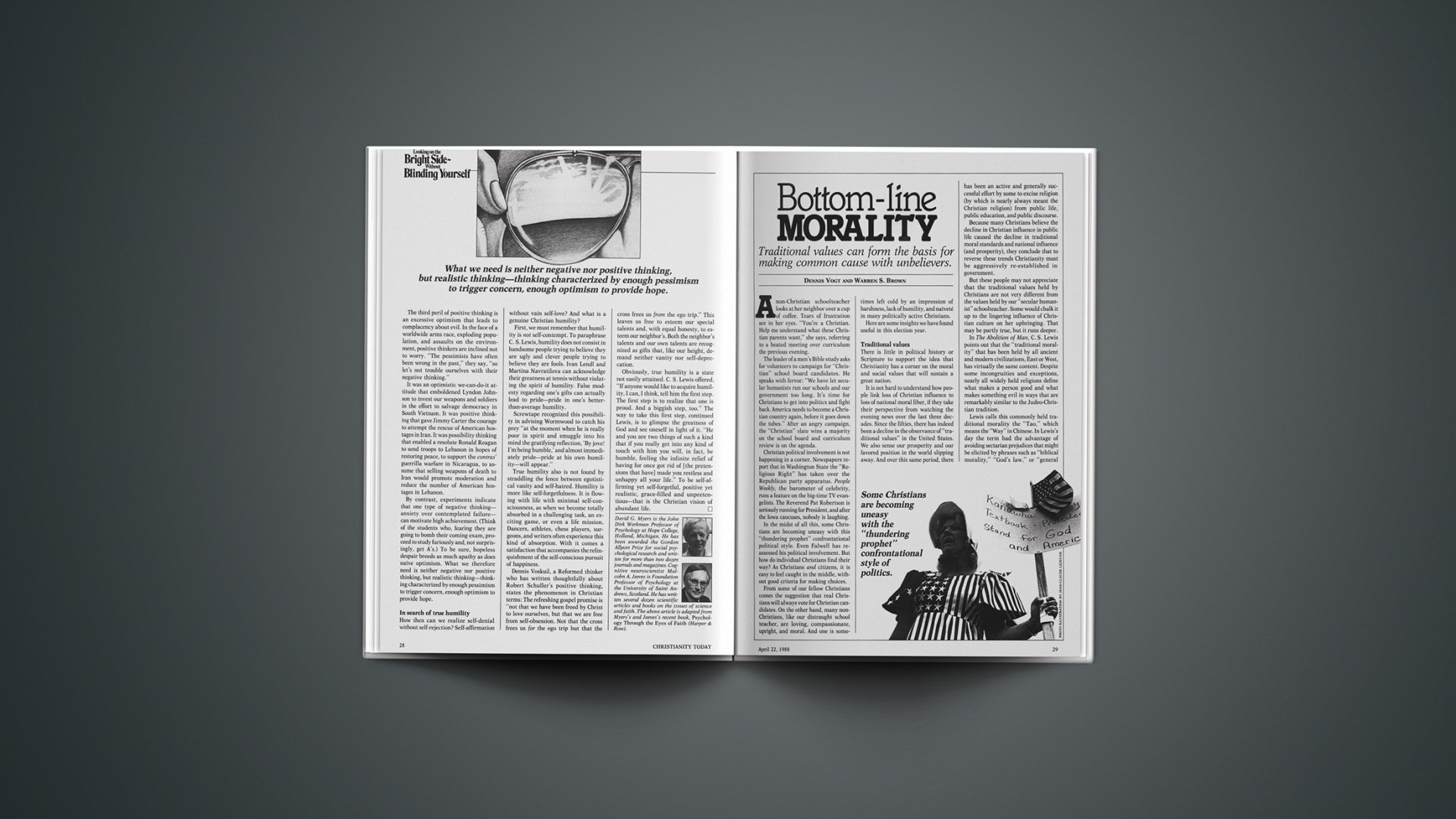 In the midst of all this, some Christians are becoming uneasy with this “thundering prophet” confrontational political style. Even Falwell has reassessed his political involvement. But how do individual Christians find their way? As Christians and citizens, it is easy to feel caught in the middle, without good criteria for making choices.