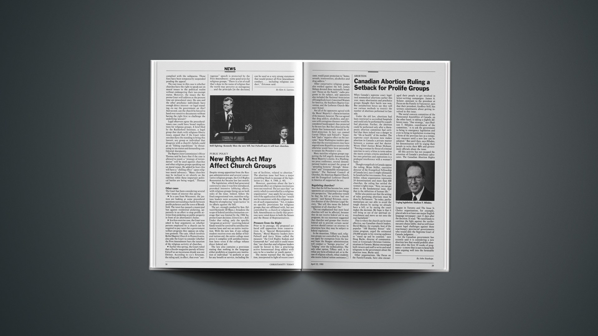 Many mainline religious groups supporting the bill angrily denounced the Moral Majority’s claims. At a Washington press conference, several denominational leaders accused the group of “spreading hysteria” through “distortions” and “irresponsible misrepresentations.” The National Council of Churches, the American Baptist Church, and the Evangelical Lutheran Church in America all supported the act.