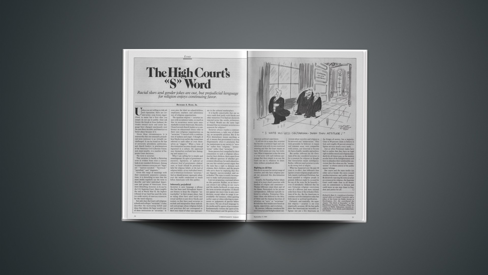 RICHARD A. BAER, JR.1Richard A. Baer, Jr., is professor of environmental ethics at Cornell University and a fellow of the Center for Public Justice in Washington, D.C. He contributed the chapter “The Myth of Neutrality” to The Blackboard Fumble: Finding a Place for Values in Public Education, recently copublished by Victor Books and Christianity Today.