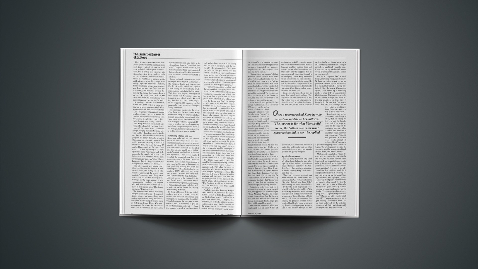 Such religious freedoms—remarkable in Soviet history, but taken for granted in the West—may be a result of Gorbachev’s religious roots. Reportedly, his mother is a devout Orthodox believer, and in 1984 Gorbachev said that his grandparents had kept icons in their home. During Gorbachev’s visit to Paris last summer a reporter asked whether the president had been baptized. He reportedly replied, “Yes, I was baptized. I don’t think there’s anything strange about that.”