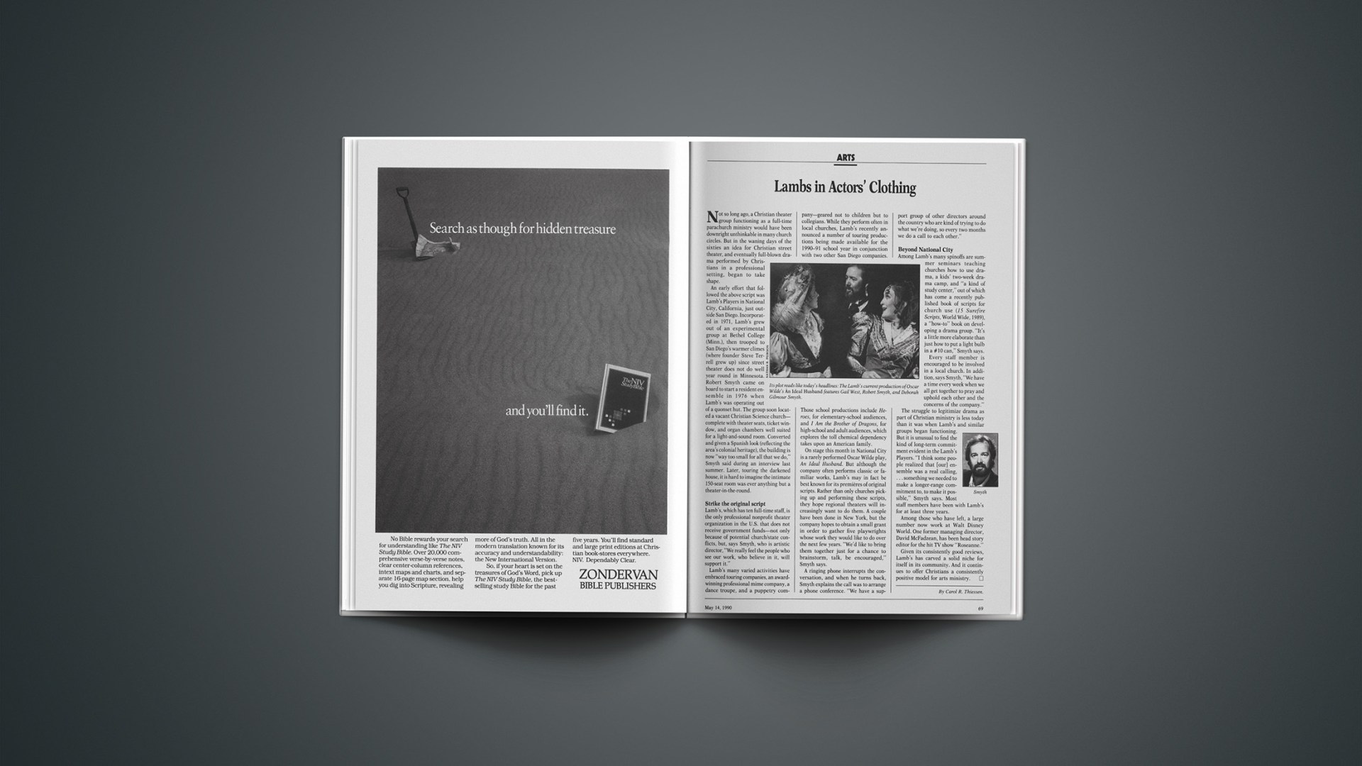 Among Lamb’s many spinoffs are summer seminars teaching churches how to use drama, a kids’ two-week drama camp, and “a kind of study center,” out of which has come a recently published book of scripts for church use (15 Surefire Scripts, World Wide, 1989), a “how-to” book on developing a drama group. “It’s a little more elaborate than just how to put a light bulb in a #10 can,” Smyth says.