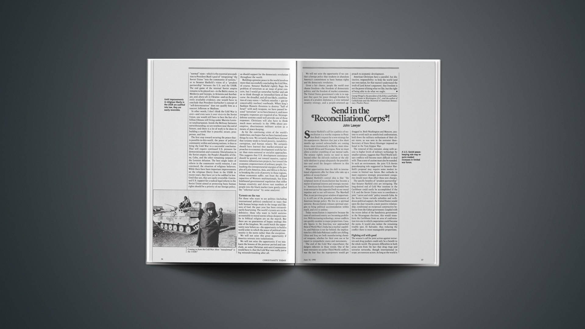Senator Hatfield’s call for a politics of reconciliation is a worthy response to President Bush’s request for a new strategy for the superpowers. Barriers that just a few short months ago seemed unbreachable are coming down—most dramatically in Berlin, more slowly in South Africa and Nicaragua. Now we must allow a similar crumbling of our mental walls. The senator rightly insists we need to move beyond either the old-style realism or the old-style idealism to grasp adequately the possibilities—and avoid the dangers—inherent in this new situation.