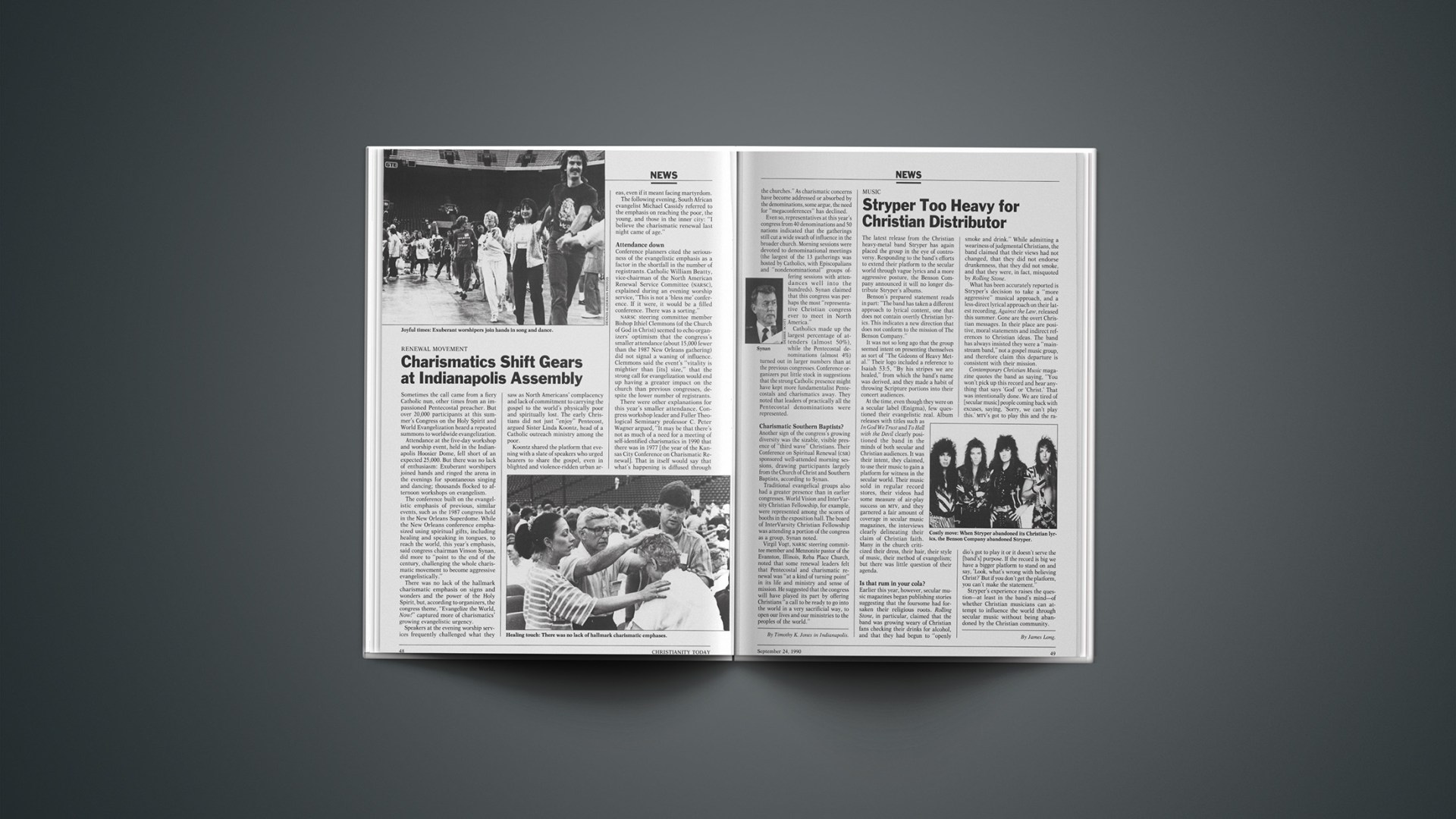The latest release from the Christian heavy-metal band Stryper has again placed the group in the eye of controversy. Responding to the band’s efforts to extend their platform to the secular world through vague lyrics and a more aggressive posture, the Benson Company announced it will no longer distribute Stryper’s albums.