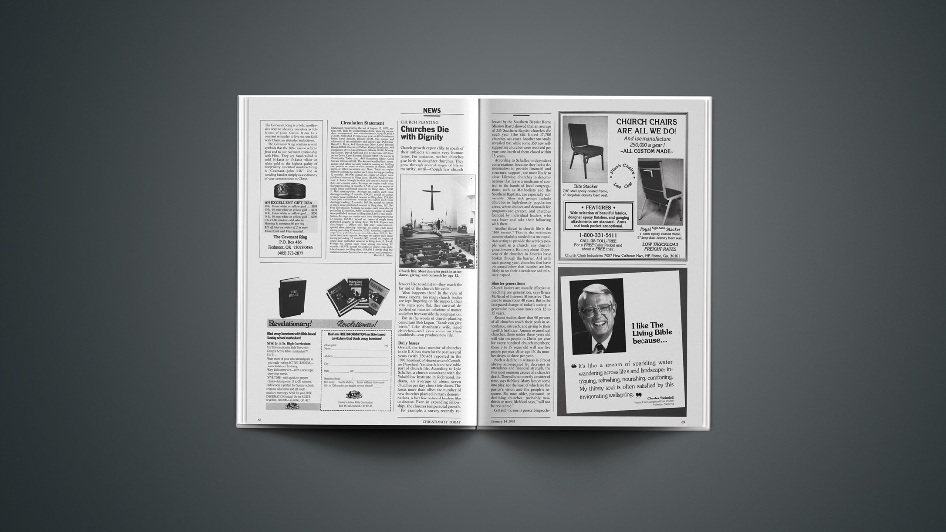 Overall, the total number of churches in the U.S. has risen for the past several years (with 350,481 reported in the 1990 Yearbook of American and Canadian Churches). Yet death is an inevitable part of church life. According to Lyle Schaller, a church consultant with the Yokefellow Institute in Richmond, Indiana, an average of about seven churches per day close their doors. The losses more than offset the number of new churches planted in many denominations, a fact few national leaders like to discuss. Even in expanding fellowships, the closures temper total growth.
