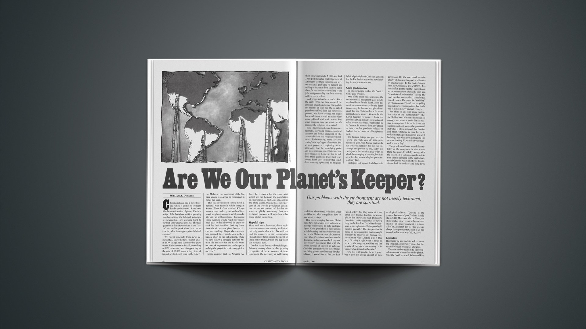 Here I find the most cause for encouragement. More and more, ecological concerns are being addressed in the context of values and religious commitments. Unfortunately, many are proposing “new age” types of answers. But at least people are beginning to acknowledge that the underlying problem is a religious one. Christians are more frequently being invited to address these questions. Twice last year, around Earth Day, I was invited to address meetings sponsored by religious coalitions who wanted to find out what the Bible and what evangelicals have to say about ecology.
