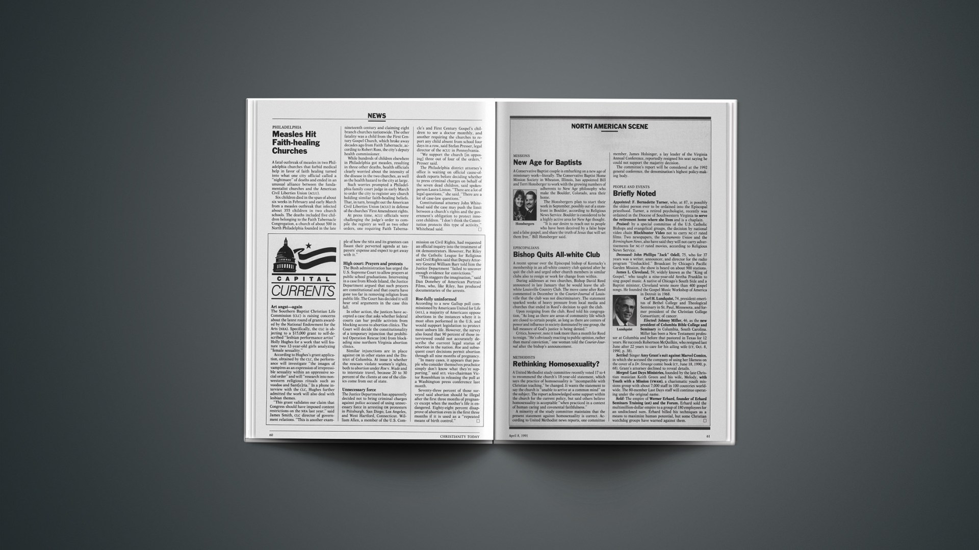 A United Methodist study committee recently voted 17 to 4 to recommend the church’s 18-year-old statement, which says the practice of homosexuality is “incompatible with Christian teaching,” be changed. It wants the statement to say the church is “unable to arrive at a common mind” on the subject. The report acknowledged some support within the church for the current policy, but said others believe homosexuality is acceptable “when practiced in a context of human caring and covenental faithfulness.”