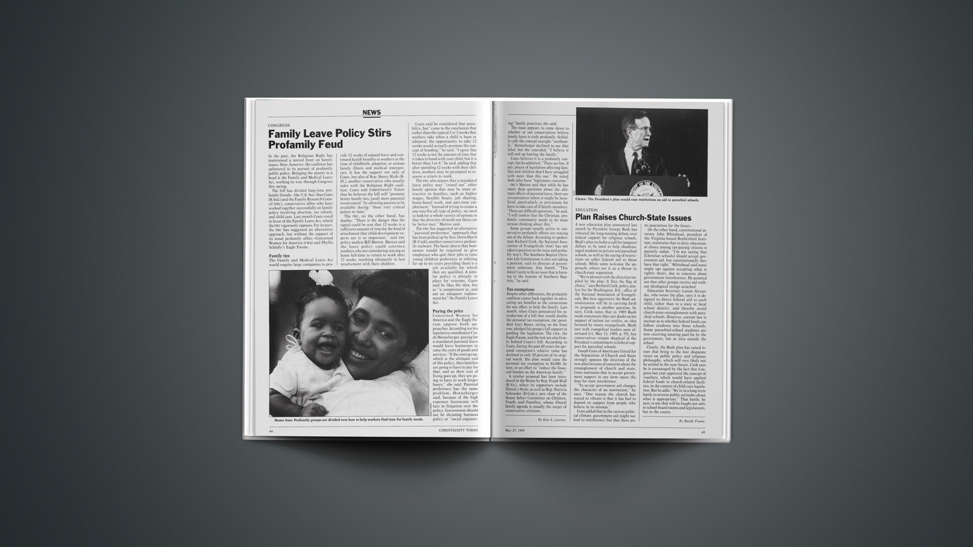 The Family and Medical Leave Act would require large companies to provide 12 weeks of unpaid leave and continued health benefits to workers at the time of childbirth, adoption, or serious family illness and medical emergencies. It has the support not only of Coats, but also of Rep. Henry Hyde (R-Ill.), another conservative who usually sides with the Religious Right coalition. Coats told CHRISTIANITY TODAY that he believes the bill will “promote better family ties, [and] more parental involvement” by allowing parents to be available during “those very critical points in time.”
