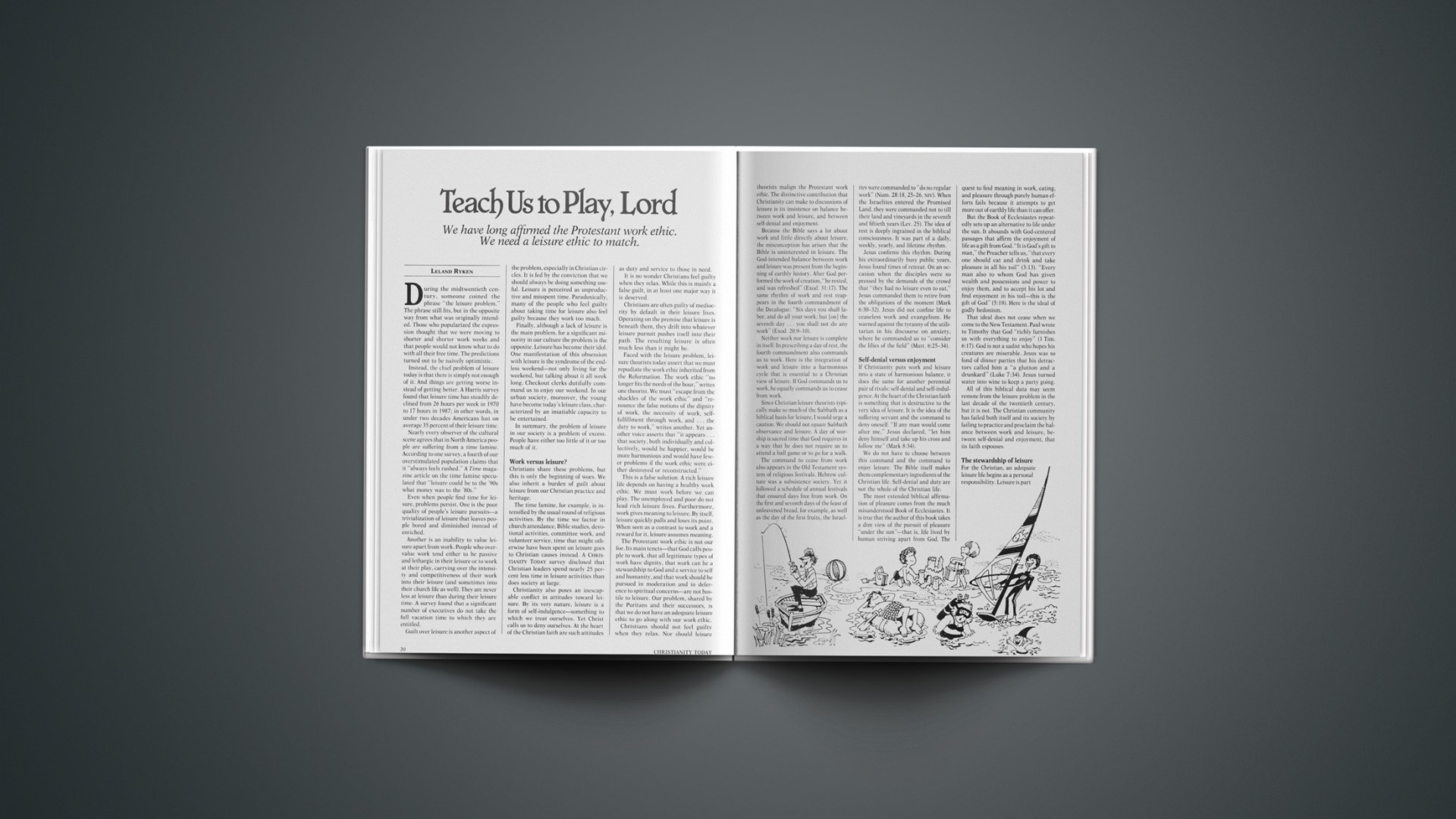 The Protestant work ethic is not our foe. Its main tenets—that God calls people to work, that all legitimate types of work have dignity, that work can be a stewardship to God and a service to self and humanity, and that work should be pursued in moderation and in deference to spiritual concerns—are not hostile to leisure. Our problem, shared by the Puritans and their successors, is that we do not have an adequate leisure ethic to go along with our work ethic.