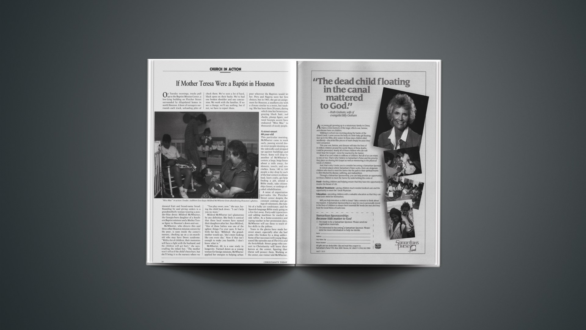 McWhorter, 60, is a case study in longevity. Turned down as a young woman for foreign missions, McWhorter applied her energies to helping urban poor wherever the Baptists would let her. Peru and Nigeria were her first choices, but in 1963, she got an assignment for Houston, a southern city with a climate similar to a moist, hot washrag. She has been there 28 years, during which time her brown eyes, graying black hair, red cheeks, plump figure, and rural Georgia accent have endeared “Miss Mac” to thousands of needy people.
