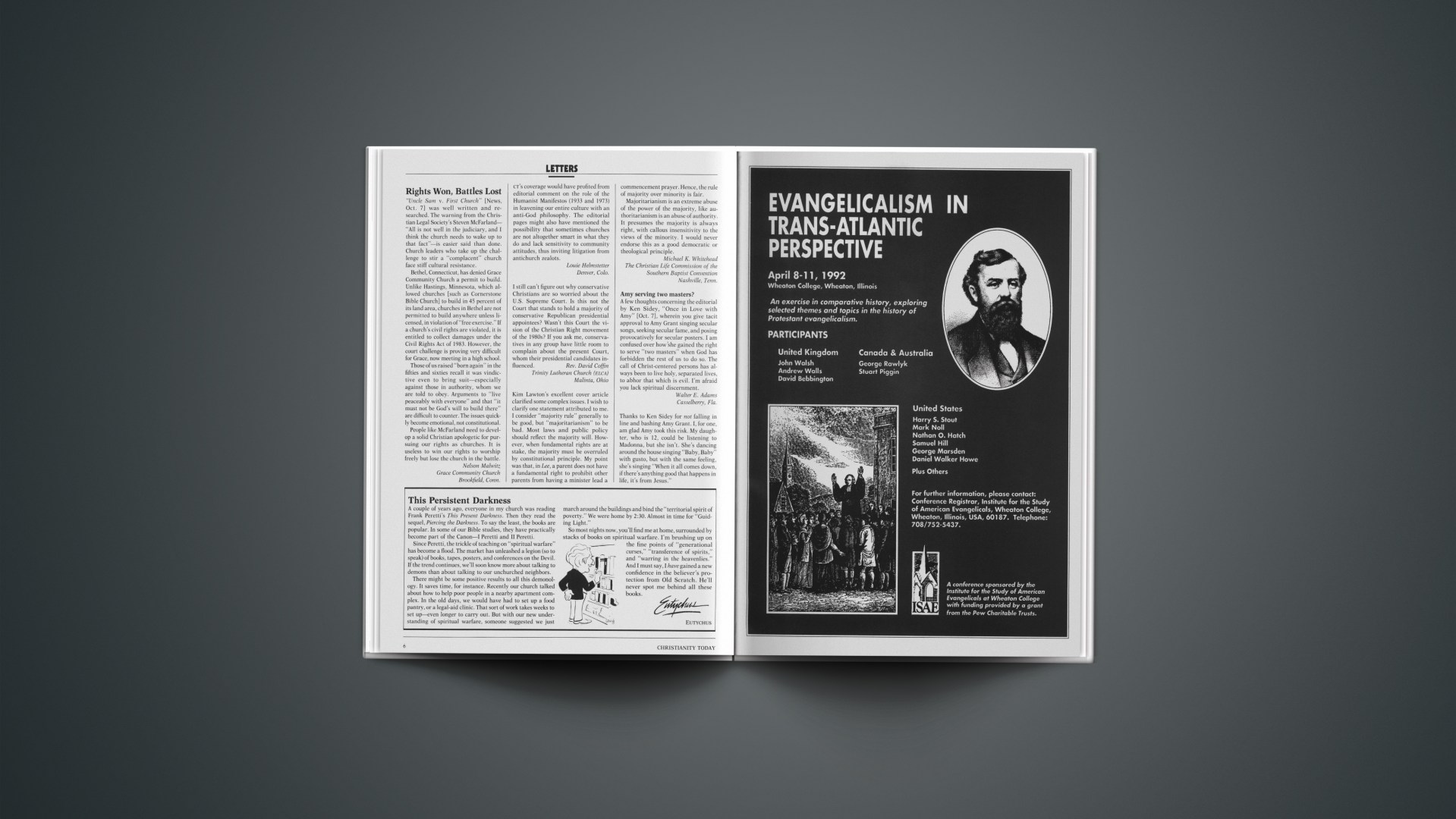 “Kingdom of the Cult Watchers” [Oct. 7] raised some hard questions. Why are evangelical seminaries so quiet about the New Age and the cults? Why have evangelical publications become so silent on doctrinal issues? Is it not because in our desire to be inclusive we have sold our own doctrinal heritage? Tim Stafford might well have named a few more names. Perhaps God is using the New Age to recall evangelicals back to historic Christological and soteriological preaching and teaching.
