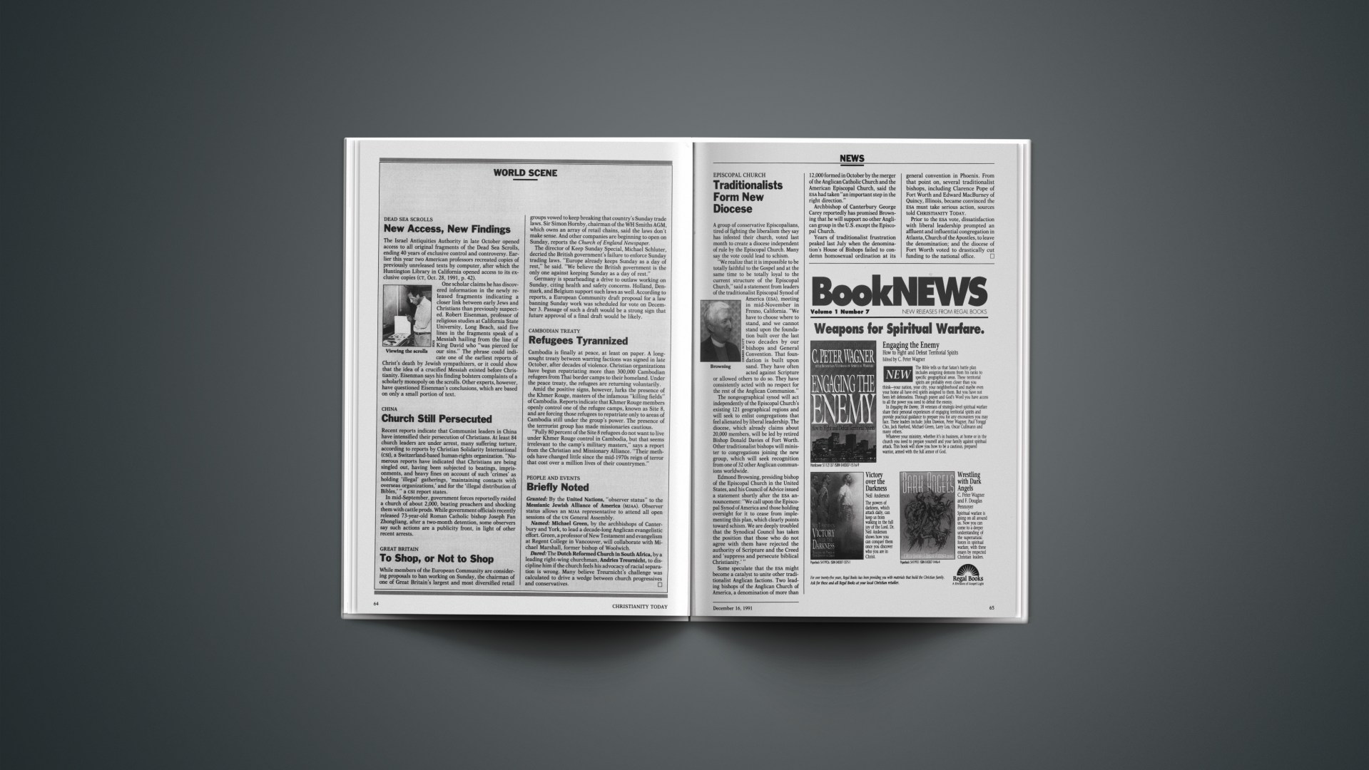 The Israel Antiquities Authority in late October opened access to all original fragments of the Dead Sea Scrolls, ending 40 years of exclusive control and controversy. Earlier this year two American professors recreated copies of previously unreleased texts by computer, after which the Huntington Library in California opened access to its exclusive copies (CT, Oct. 28, 1991, p. 42).