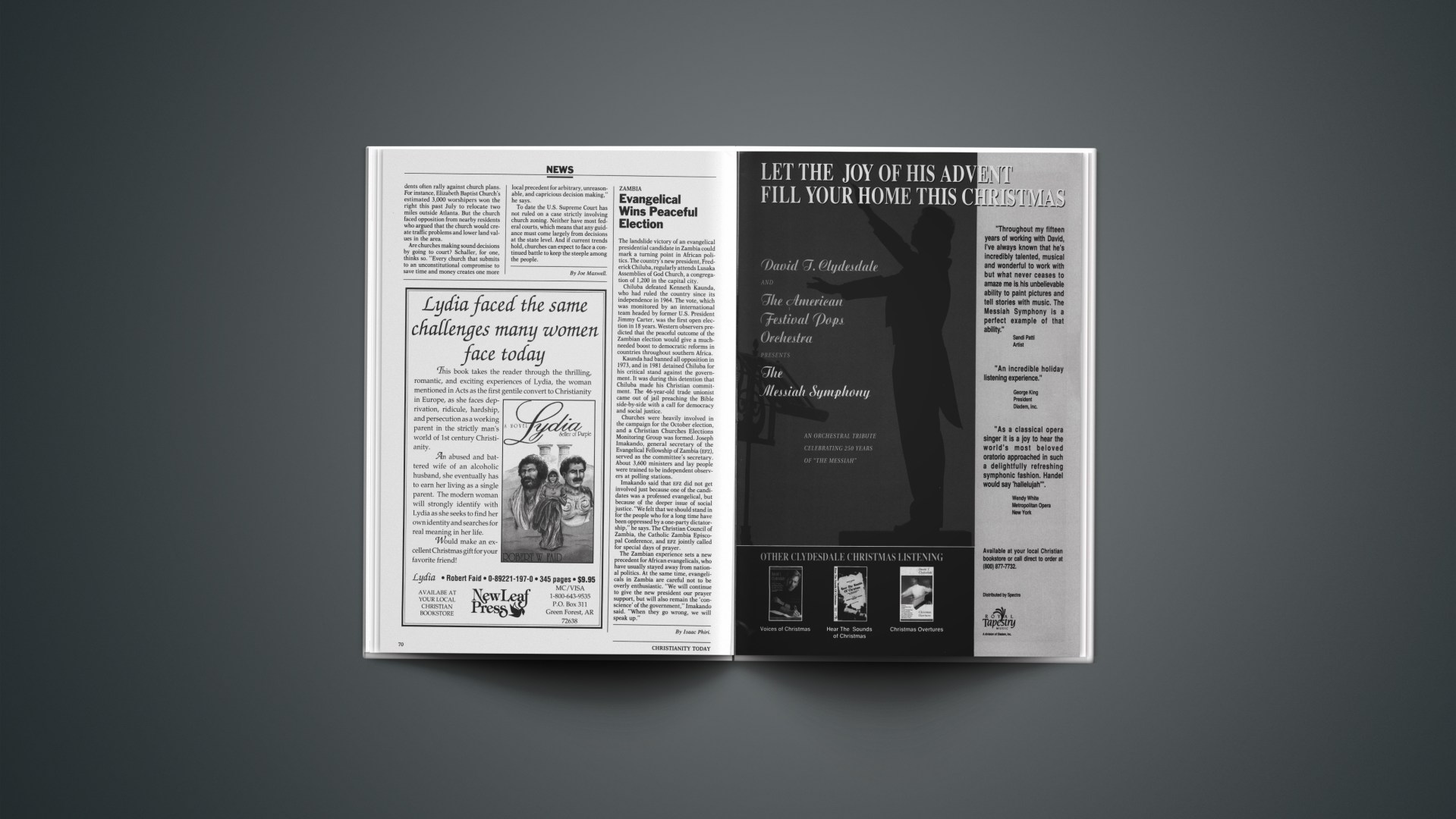 The landslide victory of an evangelical presidential candidate in Zambia could mark a turning point in African politics. The country’s new president, Frederick Chiluba, regularly attends Lusaka Assemblies of God Church, a congregation of 1,200 in the capital city.