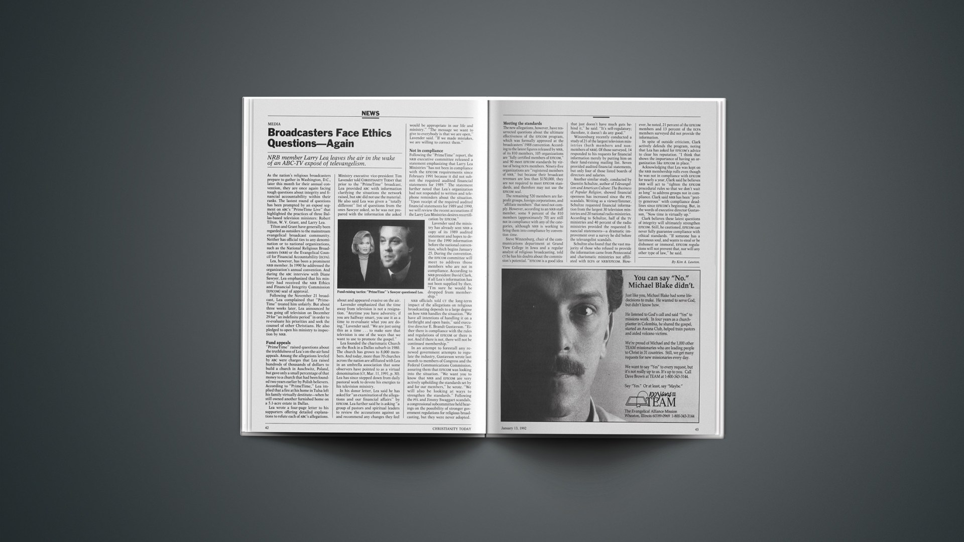 NRB member Larry Lea leaves the air in the wake of an ABC-TV exposé of televangelism.