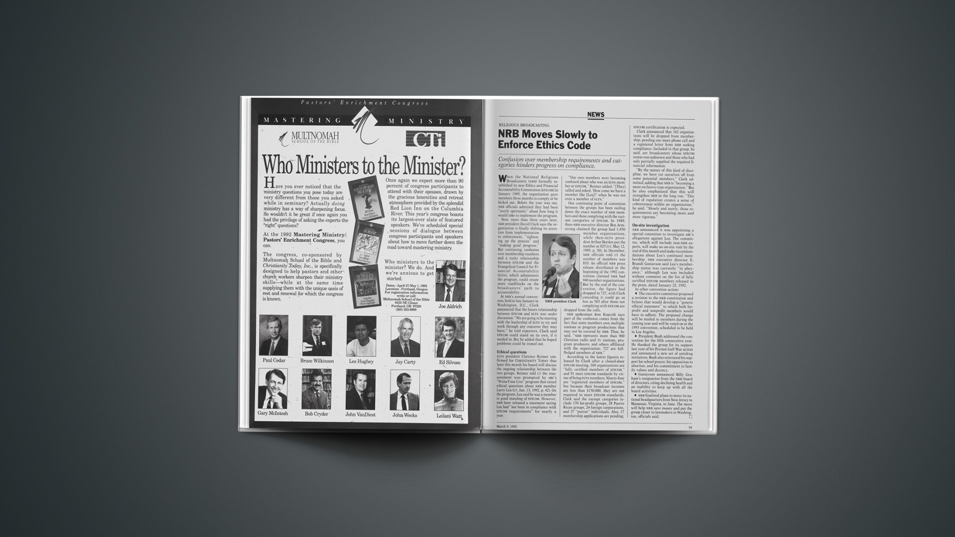 • The executive committee proposed a revision to the NRB constitution and bylaws that would develop a “generic ethical statement” to which both for-profit and nonprofit members would have to adhere. The proposed change will be mailed to members during the coming year and will be voted on at the 1993 convention, scheduled to be held in Los Angeles.