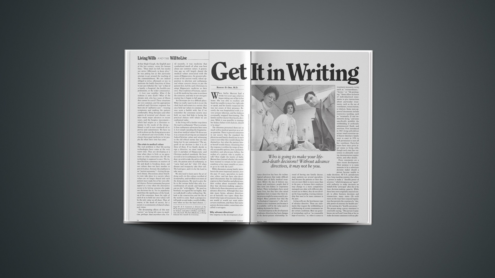 How do Christians who are interested in finding out more about advance directives get started? Documents are generally available from physicians, attorneys, state or county medical societies, health-care facilities and agencies, and citizen groups established to promote their use (see “Where to Write,” on this page, for more information on two groups that can help). In those states with legally sanctioned advance directives, the prescribed documents are designed to be filled out by the individual and, as a rule, do not usually require the assistance of an attorney.