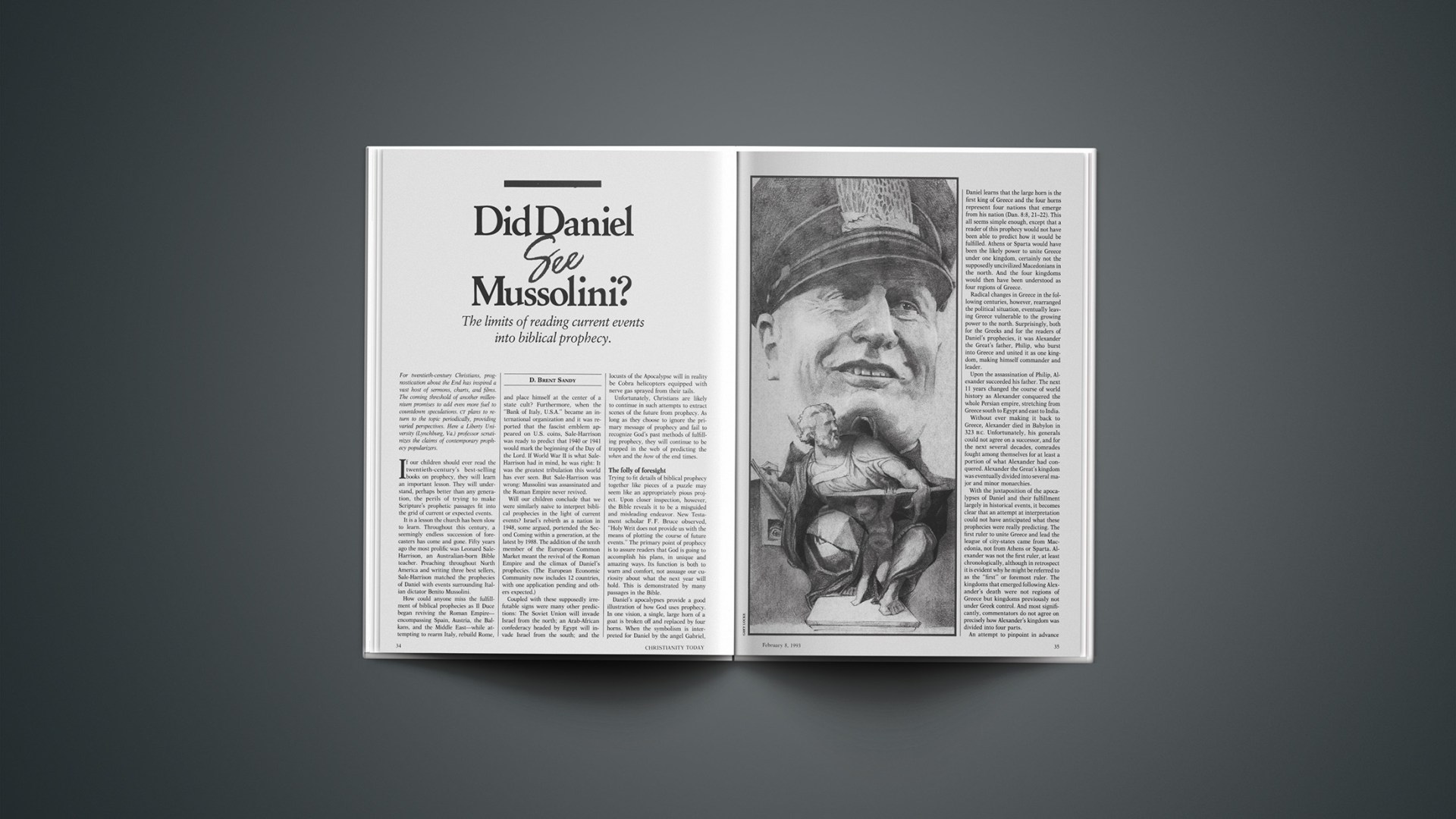 It is a lesson the church has been slow to learn. Throughout this century, a seemingly endless succession of forecasters has come and gone. Fifty years ago the most prolific was Leonard Sale-Harrison, an Australian-born Bible teacher. Preaching throughout North America and writing three best sellers, Sale-Harrison matched the prophecies of Daniel with events surrounding Italian dictator Benito Mussolini.