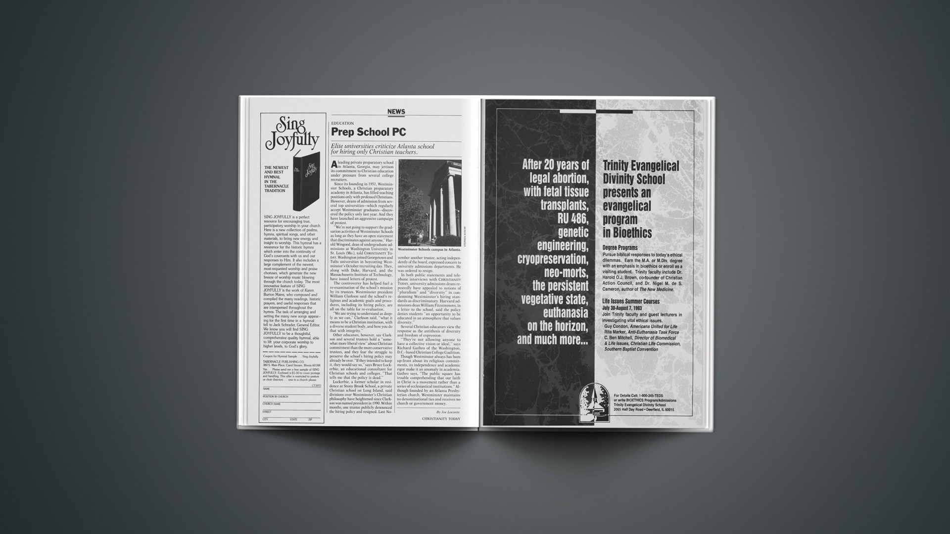 Since its founding in 1951, Westminster Schools, a Christian preparatory academy in Atlanta, has filled teaching positions only with professed Christians. However, deans of admission from several top universities—which regularly accept Westminster graduates—discovered the policy only last year. And they have launched an aggressive campaign of protest.