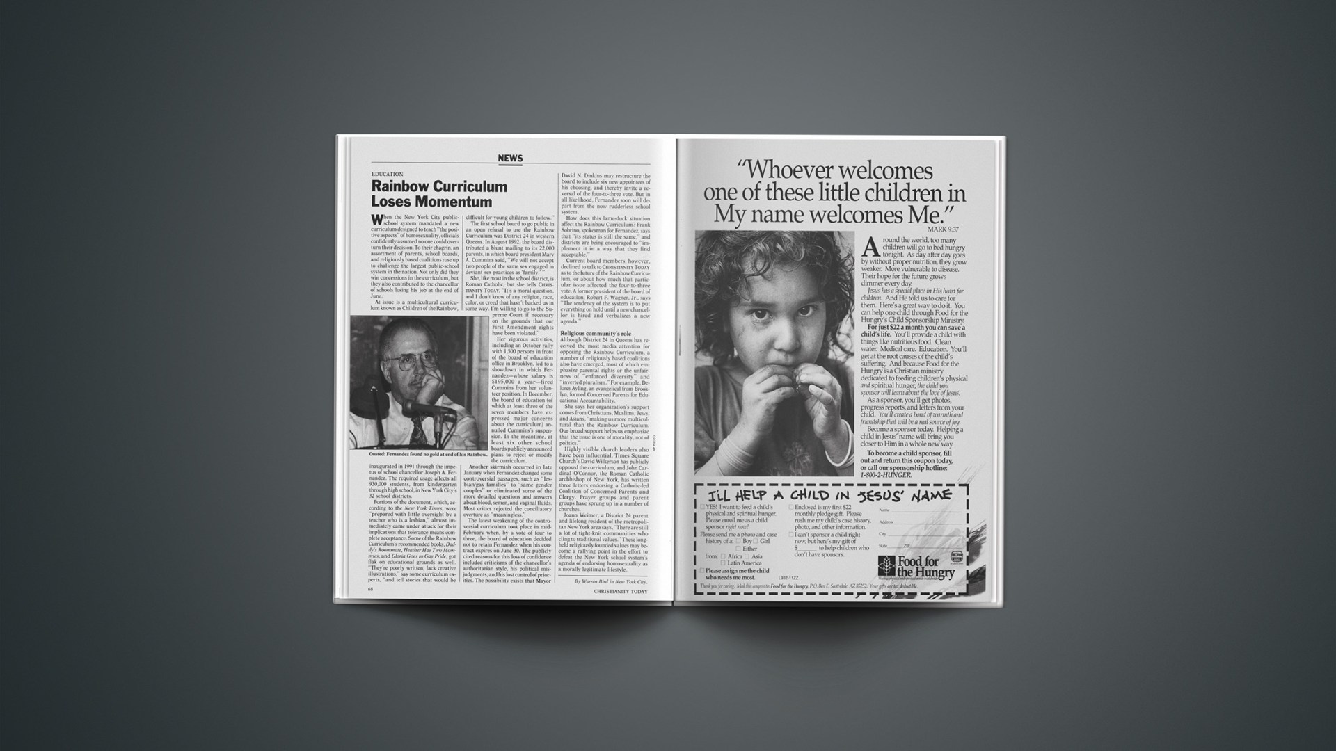 Current board members, however, declined to talk to CHRISTIANITY TODAY as to the future of the Rainbow Curriculum, or about how much that particular issue affected the four-to-three vote. A former president of the board of education, Robert F. Wagner, Jr., says “The tendency of the system is to put everything on hold until a new chancellor is hired and verbalizes a new agenda.”