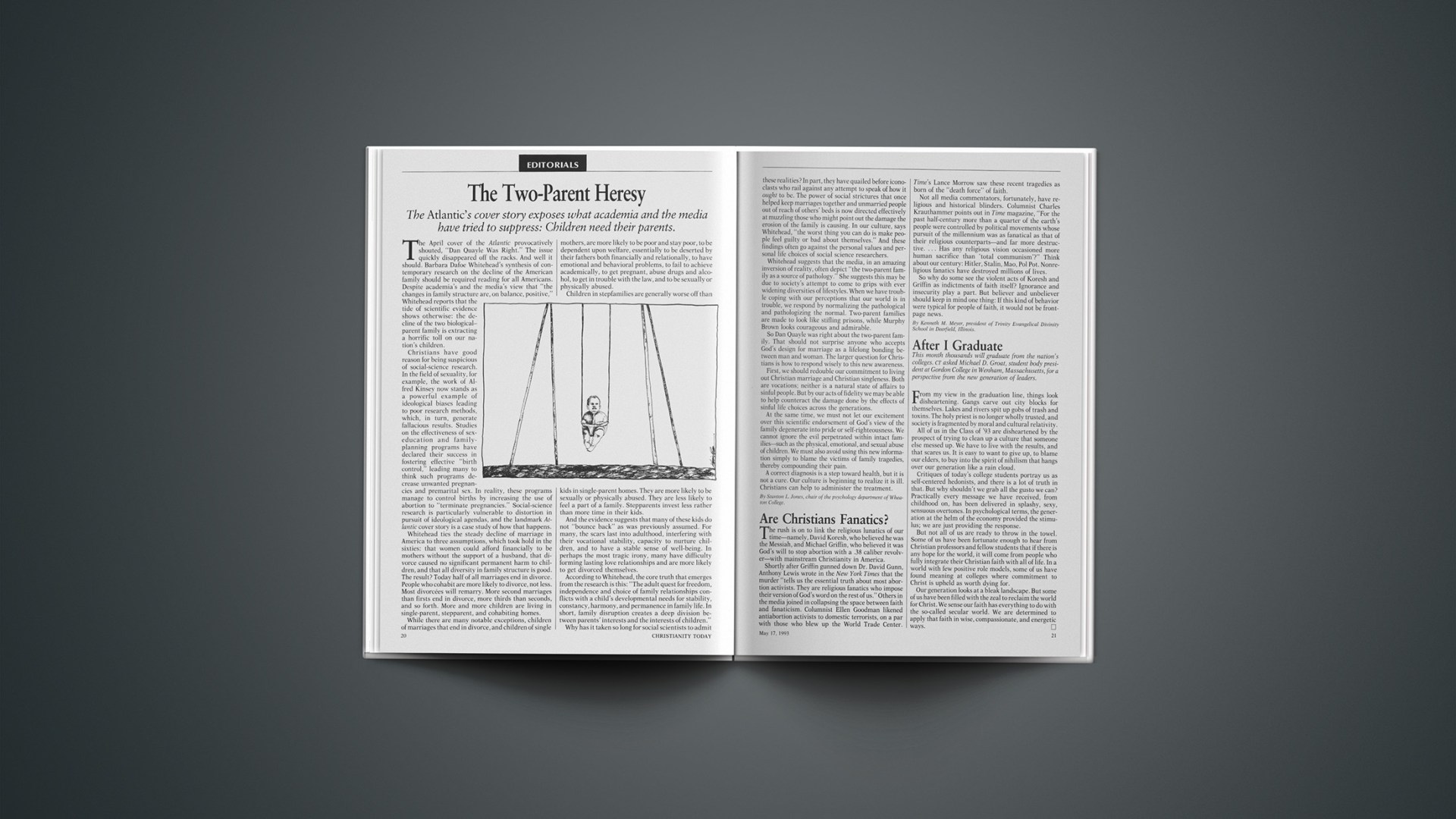 So Dan Quayle was right about the two-parent family. That should not surprise anyone who accepts God’s design for marriage as a lifelong bonding between man and woman. The larger question for Christians is how to respond wisely to this new awareness.