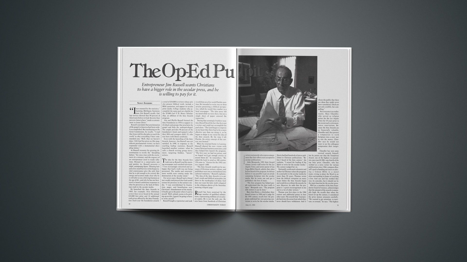 Chandler has won some coveted awards himself, but he points out that the Templeton Award, one of the highest in journalism, pays just $2,500—one-fourth of the top Amy prize. Chandler, who has worked as a news writer for various publications since 1966, compares Russell’s goal to handing out tracts or placing a Gideon Bible in a motel room—trying to plant the Word in an alien surrounding in hopes of reaching a few. God can and has worked that way, he concedes, but it should not be the main function for the secular press.