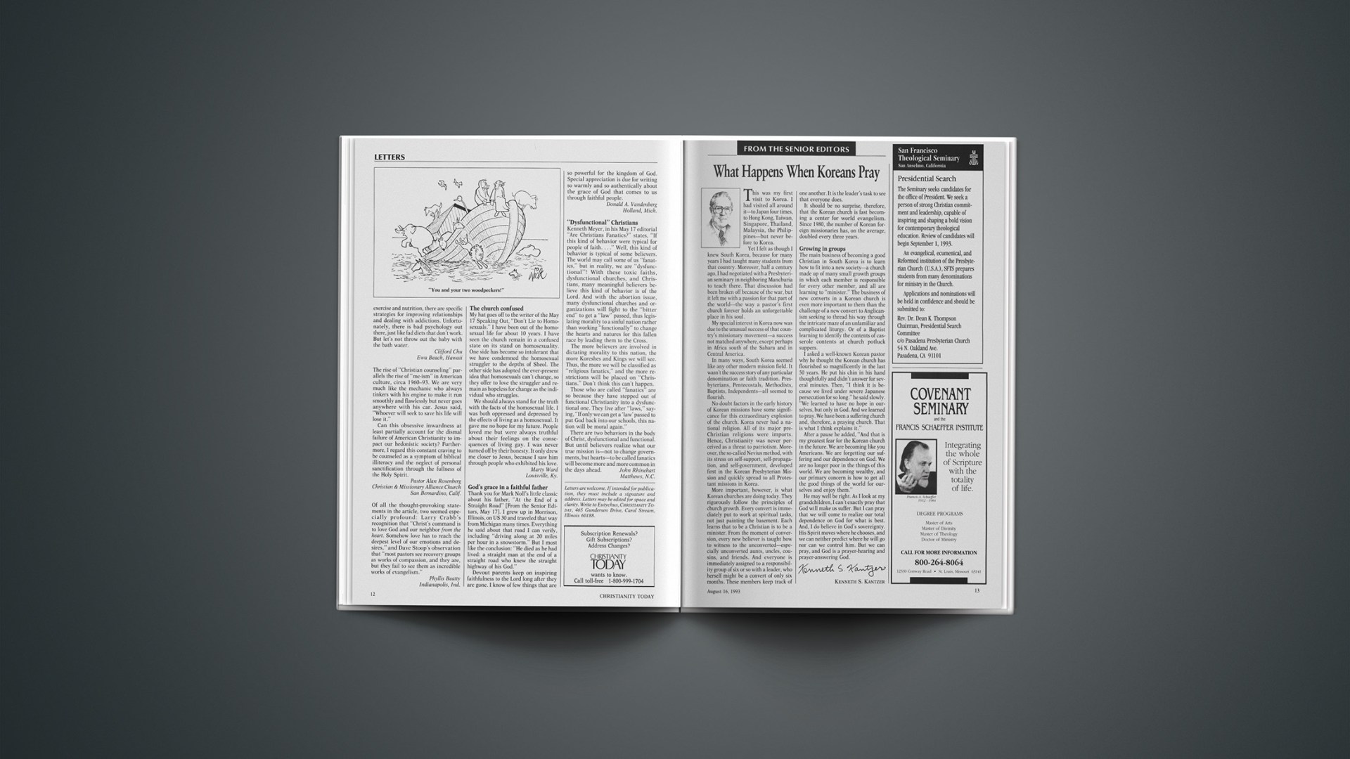 The main business of becoming a good Christian in South Korea is to learn how to fit into a new society—a church made up of many small growth groups in which each member is responsible for every other member, and all are learning to “minister.” The business of new converts in a Korean church is even more important to them than the challenge of a new convert to Anglicanism seeking to thread his way through the intricate maze of an unfamiliar and complicated liturgy. Or of a Baptist learning to identify the contents of casserole contents at church potluck suppers.