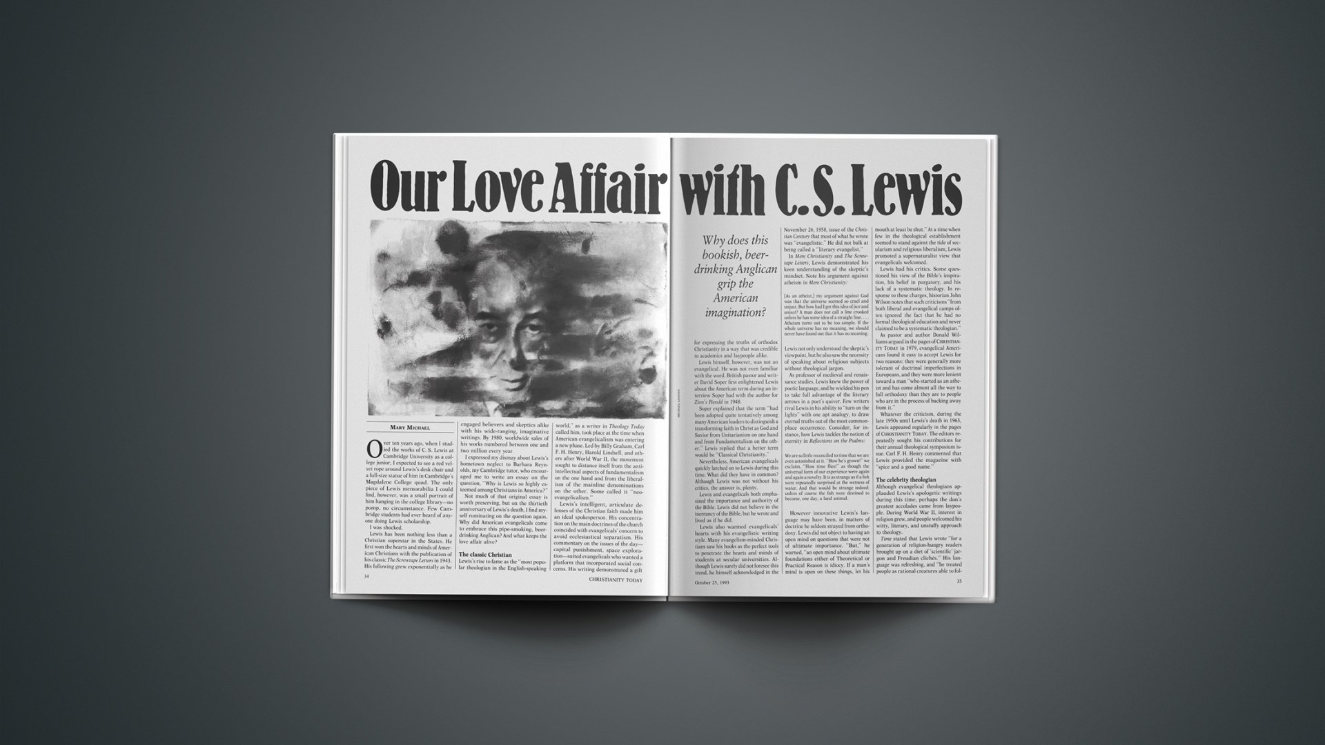 As pastor and author Donald Williams argued in the pages of CHRISTIANITY TODAY in 1979, evangelical Americans found it easy to accept Lewis for two reasons: they were generally more tolerant of doctrinal imperfections in Europeans, and they were more lenient toward a man “who started as an atheist and has come almost all the way to full orthodoxy than they are to people who are in the process of backing away from it.”