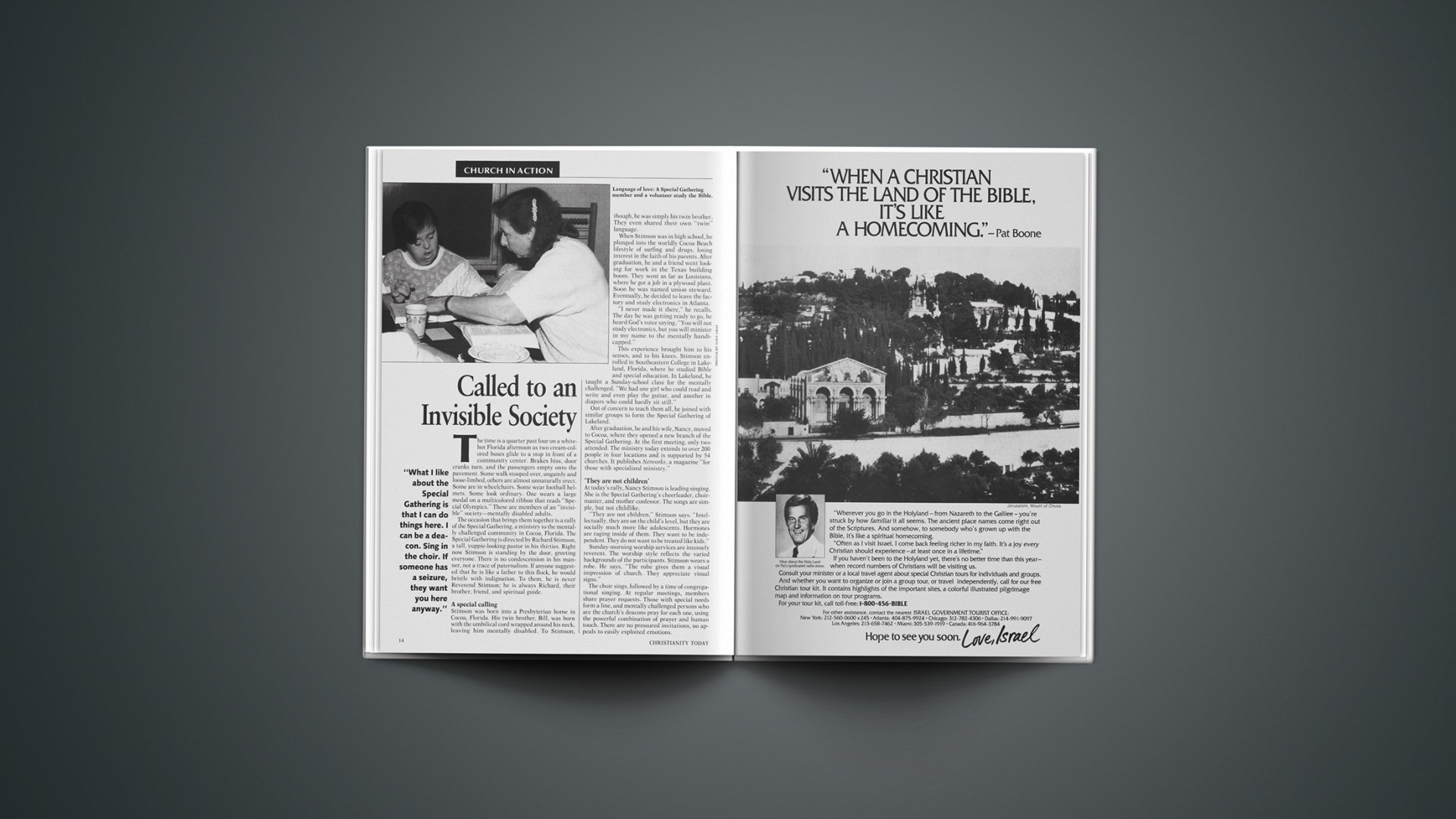 The occasion that brings them together is a rally of the Special Gathering, a ministry to the mentally challenged community in Cocoa, Florida. The Special Gathering is directed by Richard Stimson, a tall, yuppie-looking pastor in his thirties. Right now Stimson is standing by the door, greeting everyone. There is no condescension in his manner, not a trace of paternalism. If anyone suggested that he is like a father to this flock, he would bristle with indignation. To them, he is never Reverend Stimson; he is always Richard, their brother, friend, and spiritual guide.