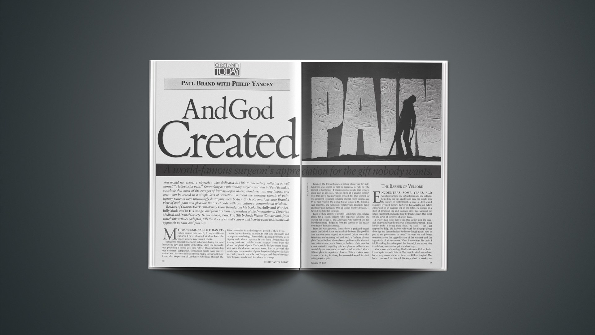 You would not expect a physician who dedicated his life to alleviating suffering to call himself "a lobbyist for pain." Yet working as a missionary surgeon in India led Paul Brand to conclude that most of the ravages of leprosy—open ulcers, blindness, missing fingers and toes—can be traced to a simple loss of sensation. Without the warning signals of pain, leprosy patients were unwittingly destroying their bodies. Such observations gave Brand a view of both pain and pleasure that is at odds with our culture's conventional wisdom. Readers of Christianity Today may know Brand from his books Fearfully and Wonderfully Made and In His Image, and from his term as president of the International Christian Medical and Dental Society. His new book, Pain: The Gift Nobody Wants (Zondervan), from which this article is adapted, tells the story of Brand's career and how he came to his unusual approach to pain and pleasure.