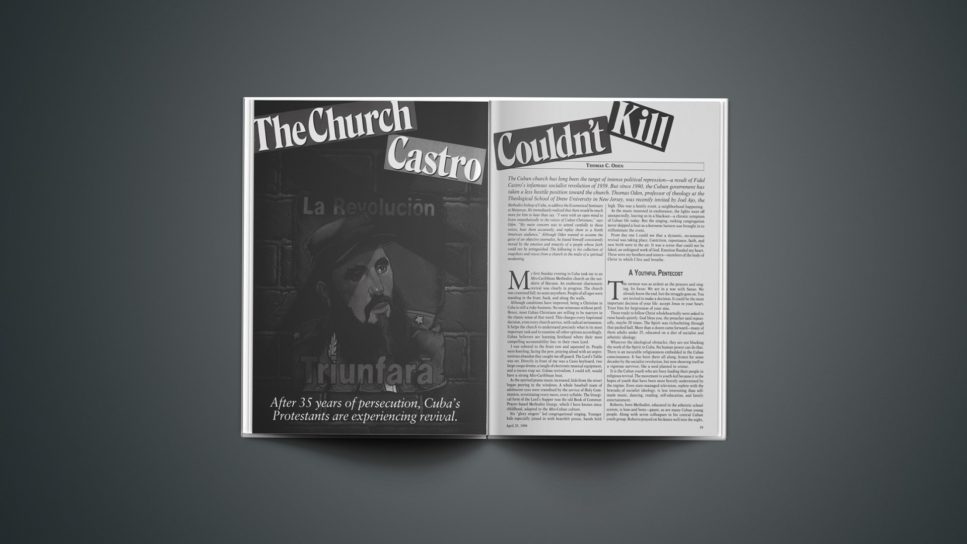The Cuban church has long been the target of intense political repression—a result of Fidel Castro’s infamous socialist revolution of 1959. But since 1990, the Cuban government has taken a less hostile position toward the church. Thomas Oden, professor of theology at the Theological School of Drew University in New Jersey, was recently invited by Joel Ajo, the Methodist bishop of Cuba, to address the Ecumenical Seminary at Matanzas. He immediately realized that there would be much more for him to hear than say. “I went with an open mind to listen empathetically to the voices of Cuban Christians,” says Oden. “My main concern was to attend carefully to those voices, hear them accurately, and replay them to a North American audience.” Although Oden wanted to assume the guise of an objective journalist, he found himself consistently moved by the emotion and tenacity of a people whose faith could not be extinguished. The following is his collection of snapshots and voices from a church in the midst of a spiritual awakening.