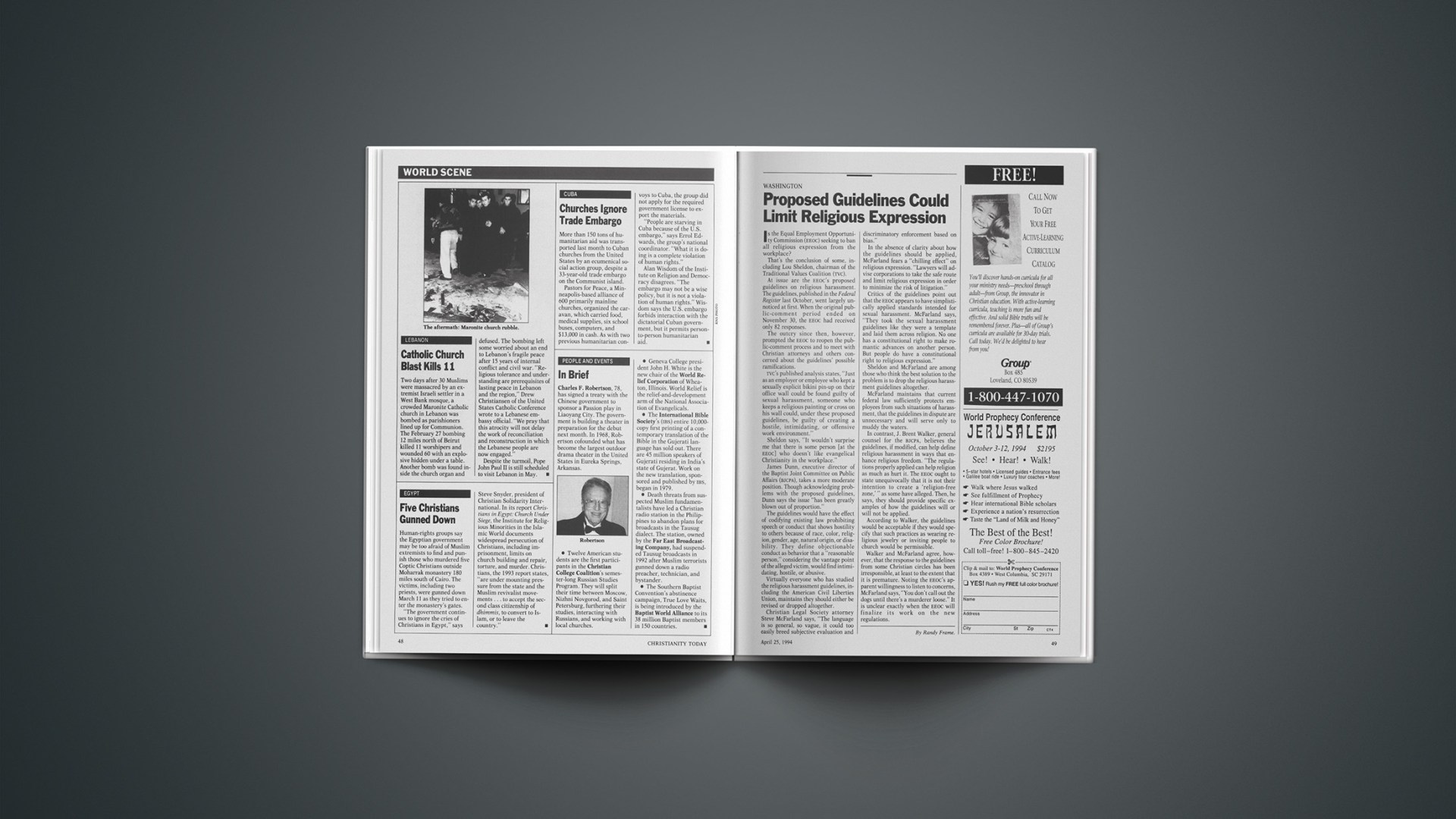 In contrast, J. Brent Walker, general counsel for the BJCPA, believes the guidelines, if modified, can help define religious harassment in ways that enhance religious freedom. “The regulations properly applied can help religion as much as hurt it. The EEOC ought to state unequivocally that it is not their intention to create a ‘religion-free zone,’ ” as some have alleged. Then, he says, they should provide specific examples of how the guidelines will or will not be applied.