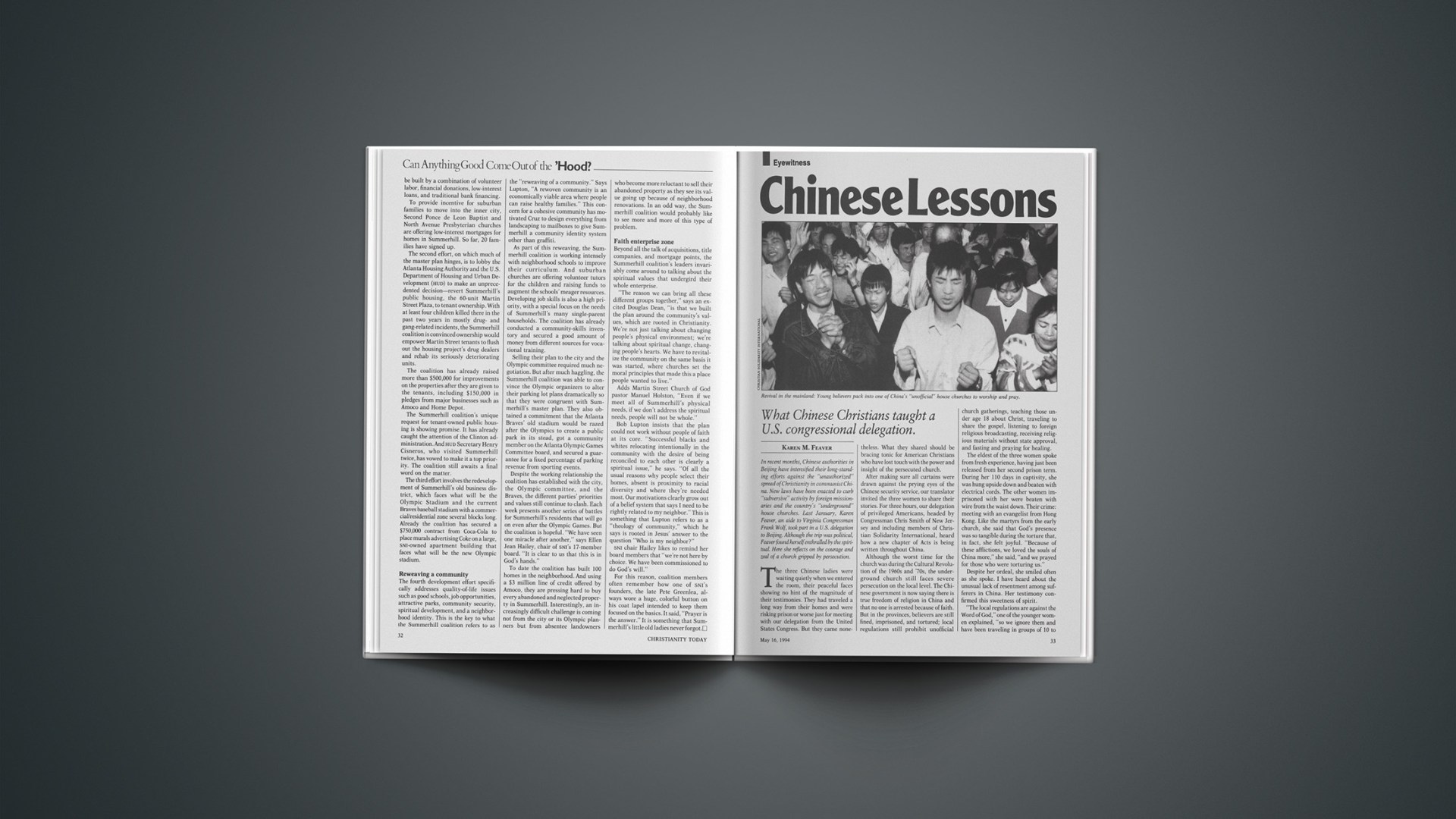 In recent months, Chinese authorities in Beijing have intensified their long-standing efforts against the “unauthorized” spread of Christianity in communist China. New laws have been enacted to curb “subversive” activity by foreign missionaries and the country’s “underground” house churches. Last January, Karen Feaver, an aide to Virginia Congressman Frank Wolf, took part in a U.S. delegation to Beijing. Although the trip was political, Feaver found herself enthralled by the spiritual. Here she reflects on the courage and zeal of a church gripped by persecution.