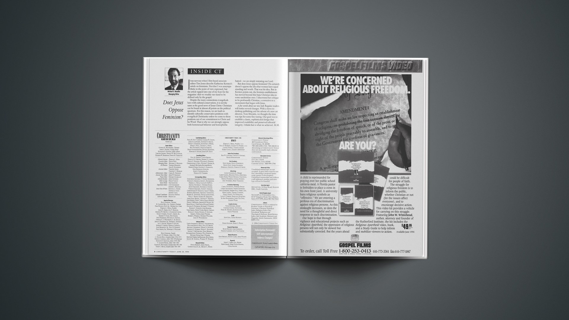 I was nervous when I first heard associate editor Tim Jones describe Katherine Kersten’s article on feminism. Not that I was unsympathetic to the point of view expressed, but the article tapped into one of my fears for the magazine: that we muddy our stand to be defined only by the gospel.